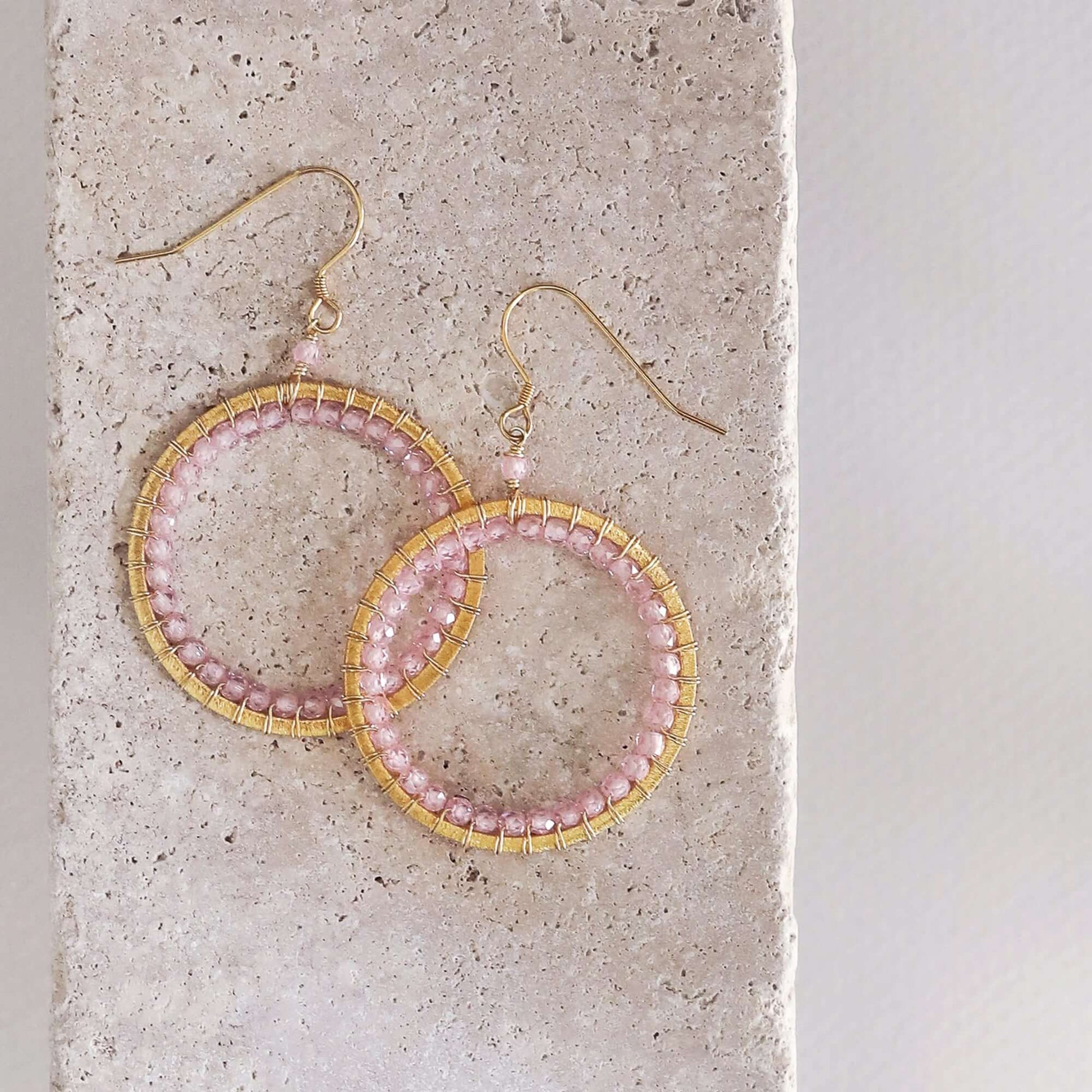 The Halo collection was our very first one. Intended to symbolize the intricate, universal energy woven within us all. These sparkling Rose Quartz earrings are ultra lightweight and an eye-catching alternative to a traditional hoop.