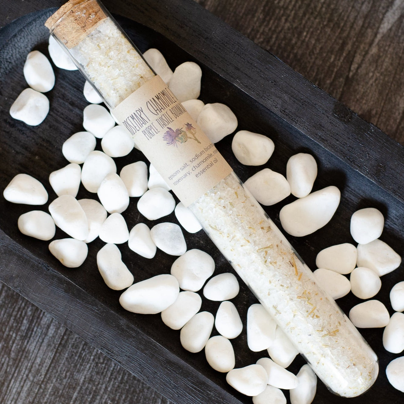 Rosemary (Rosemarinus officinalis) is pharmacologically acknowledge to be antibacterial, anticancer, antidiabetic, anti-inflammatory, antioxidant, and more. This Mediterranean gem does it all. It improves circulation, and promotes perspiration. The perspiration brings all the nasty bits to the surface to be sweated away in the bath. The chamomile (Matricaria recutita) is an antibacterial addition that provides a relaxing element to the mix.
