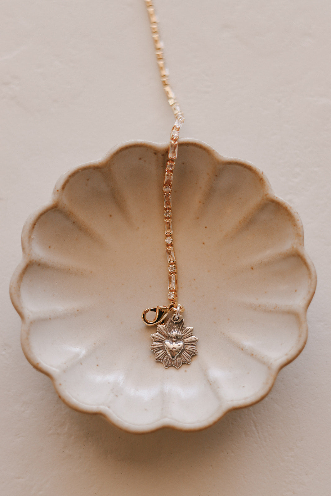 Celebrate your faith with the elegance of The Little Sacred Heart® Two-Tone Tennis Bracelet. This exquisite piece combines timeless design and deep devotion: