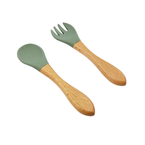 Our baby utensils set is made from BPA, PVC & LEAD-FREE food grade silicone and natural wood (handle grips). It’s 100% plastic free. Our Feeding spoon and fork head is not too wide, also not too deep. It’s narrow and small enough for baby’s small mouth. Therefore, your baby can easily eat the food on the spoon and fork without being too much. It fits for the babies & toddlers 6 months and up.