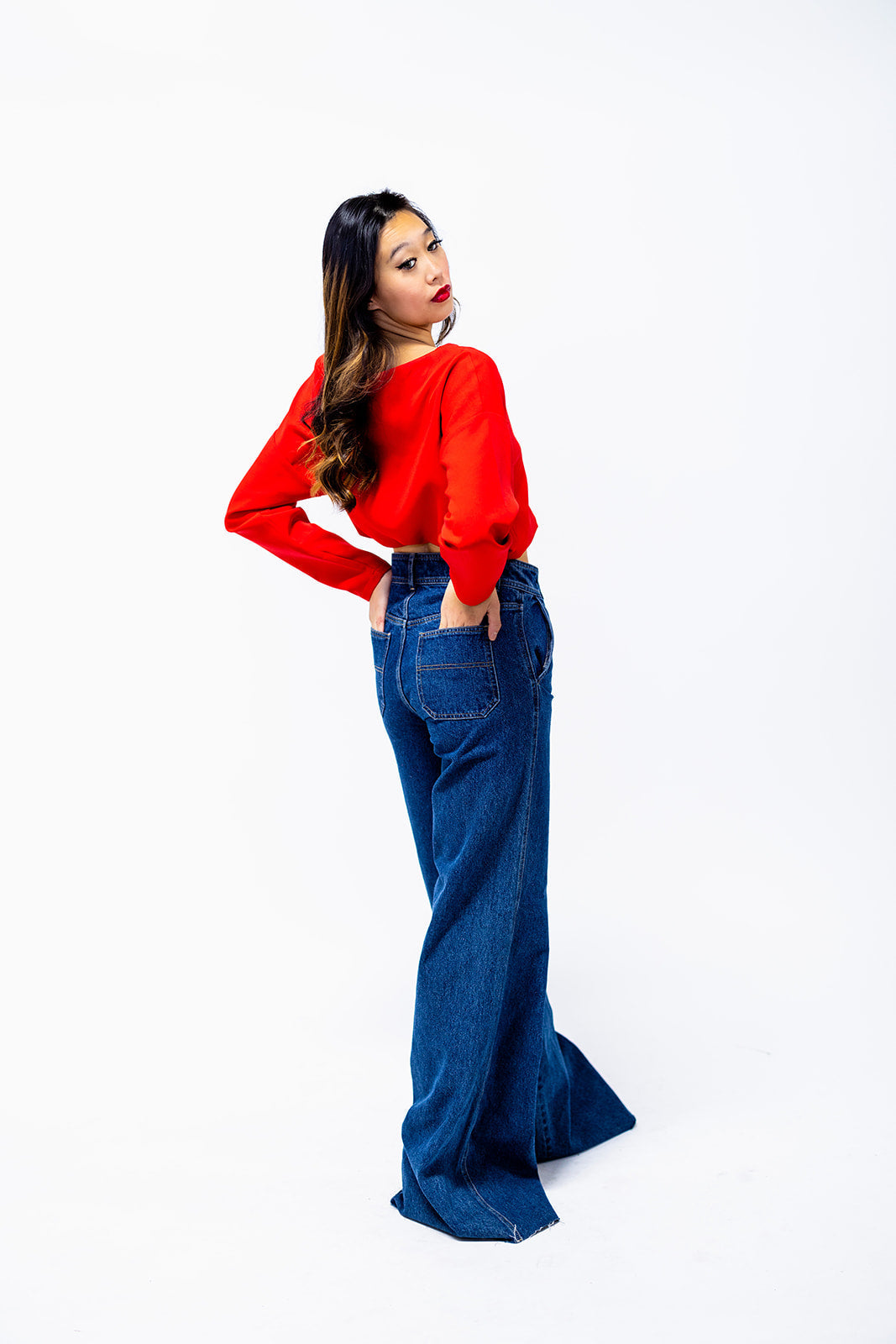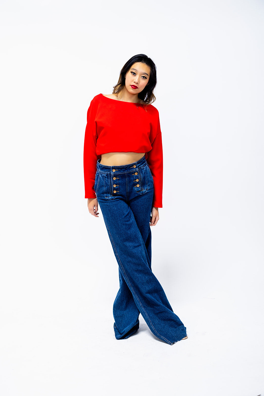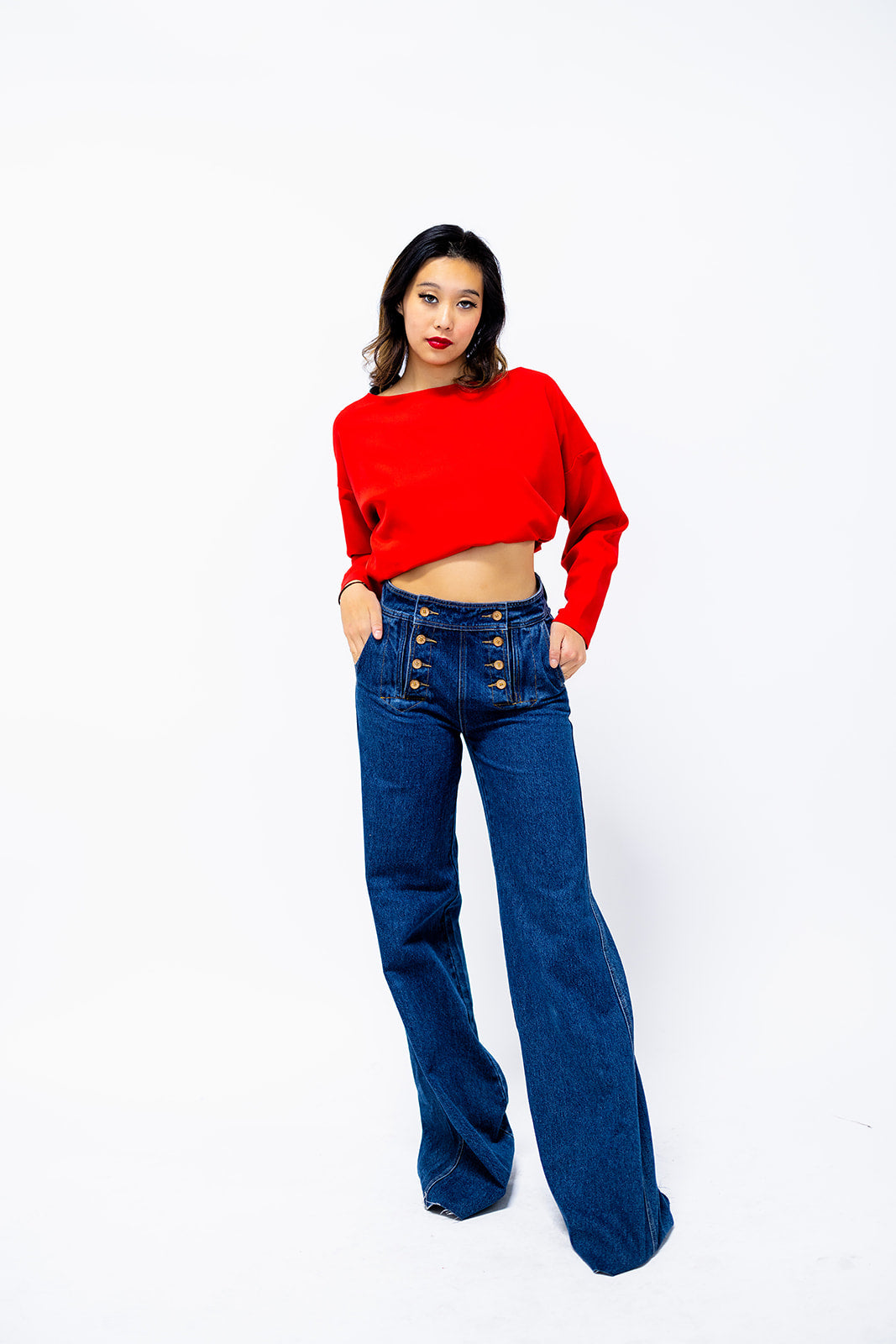 Style Tip: Pair with a tucked-in blouse, bodysuit, or cropped jacket to spotlight that iconic sailor button front.
