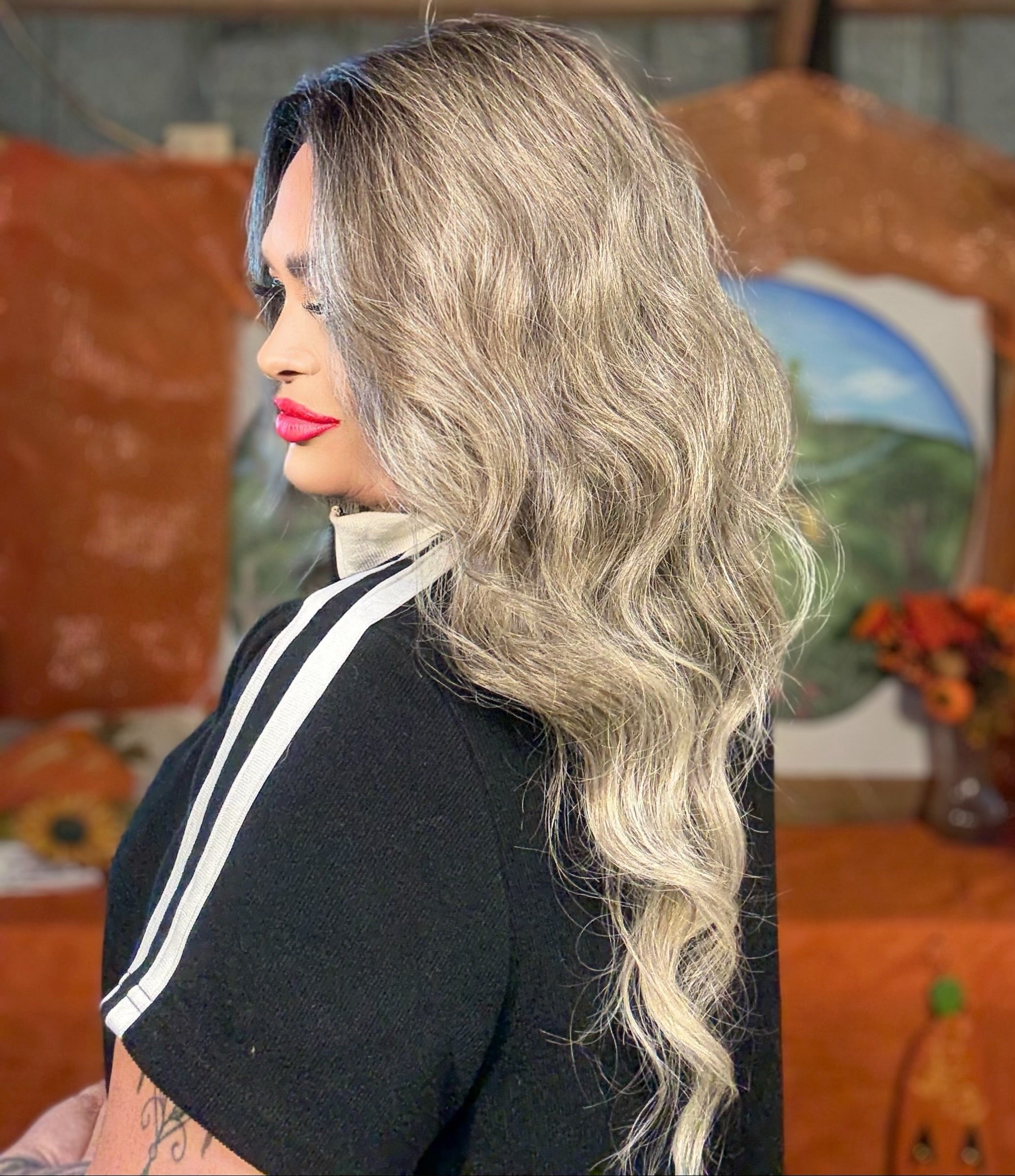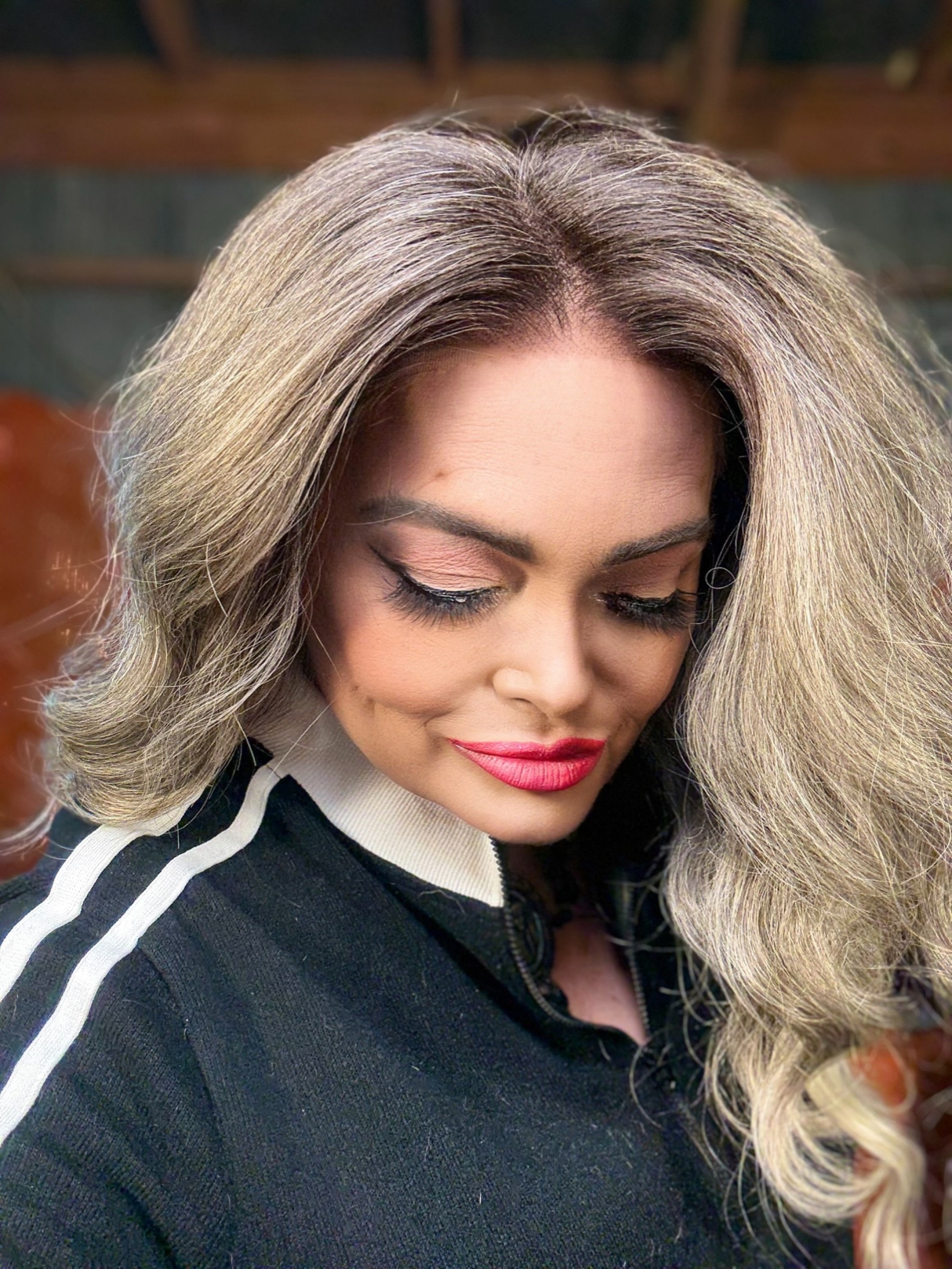 The SALT WAVE wig features a 13x4 pre-cut lace front that allows versatile free parting for a natural look. Crafted from premium heat-resistant synthetic protein fibers, it offers durability and styling flexibility. With 24-inch loose curls and layered texture in a dark blonde and ash balayage blend, this wig delivers effortless elegance. Adjustable straps and a standard cap size ensure a comfortable, secure fit for extended wear. Ideal for those seeking a high-quality synthetic wig with a sophisticated, natural appearance.