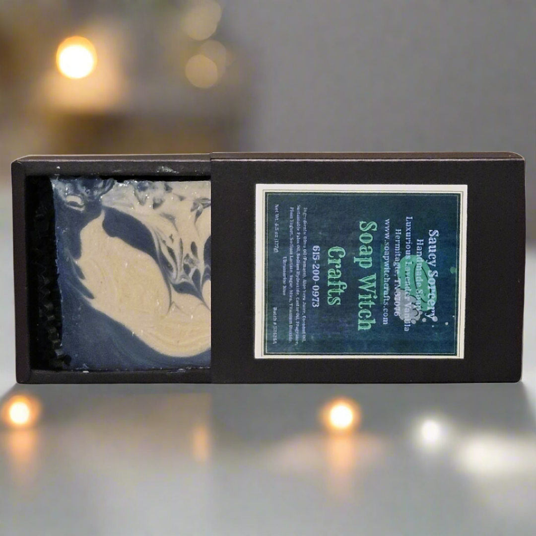 Step into your daily cleansing ritual, ready to embrace a soothing yet playful touch of magic. As you reach for the Saucy Sorcery Aloe Vera Bar Soap, the calming floral notes of lavender blend seamlessly with the warm, creamy sweetness of vanilla, and a hint of tobacco caramel wrapping you in an enchanting and indulgent aroma. Crafted by Soap Witch Crafts, this handmade treasure transforms your bath into a relaxing retreat, leaving your skin refreshed, soft, and kissed with a touch of magic.