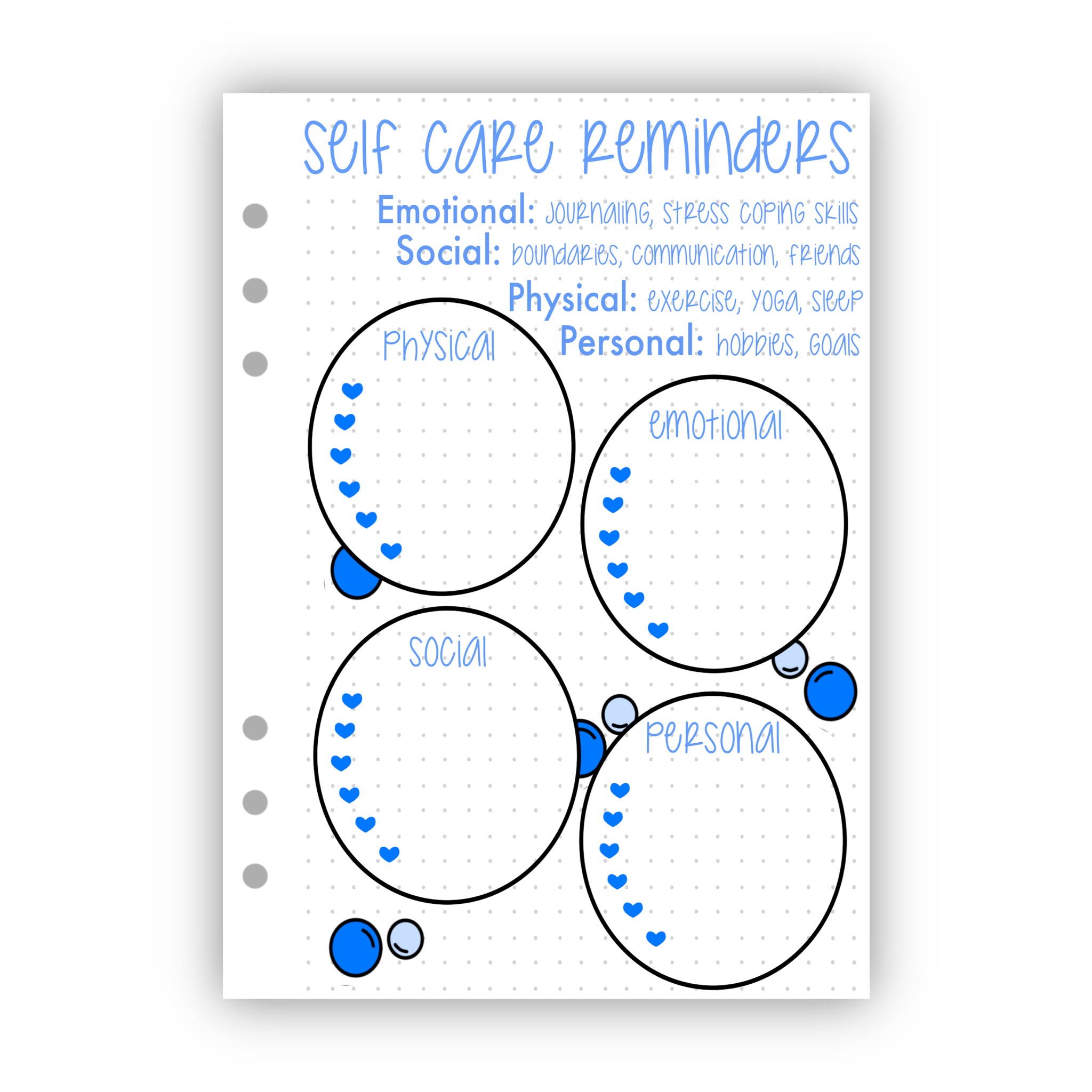 A single page to add to your self-care journal. Choose to receive a physical copy or digital download.