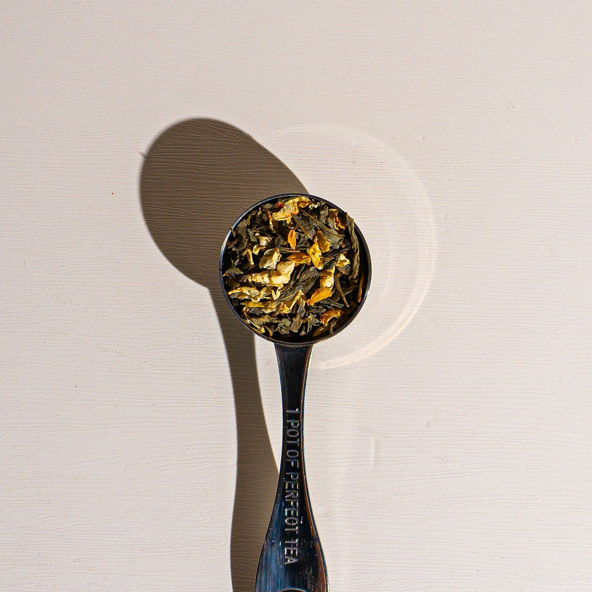 All the goodness of green tea without the caffeine. Sencha tea leaves layered with Jasmine petals to give it a subtle mild jasmine note of taste.