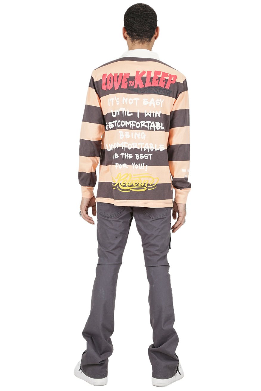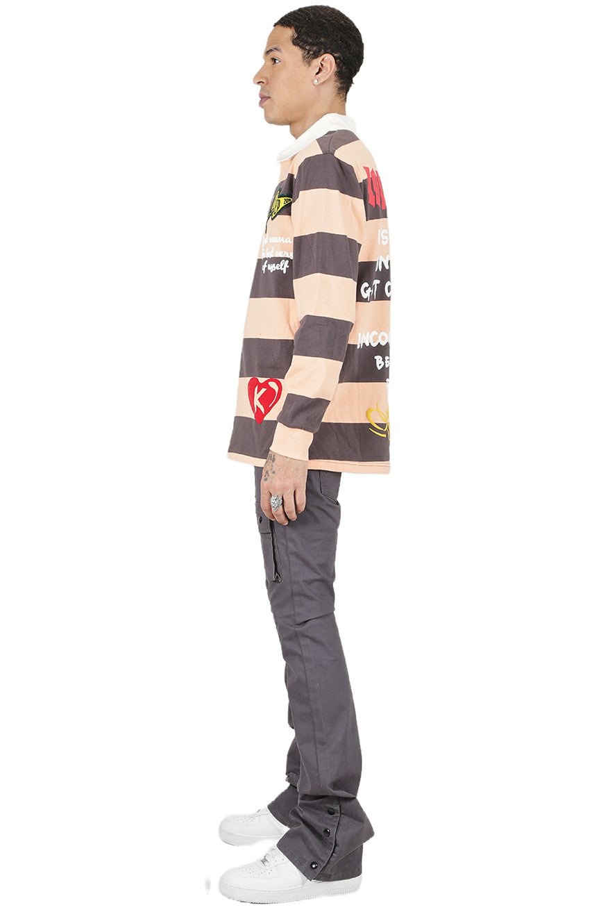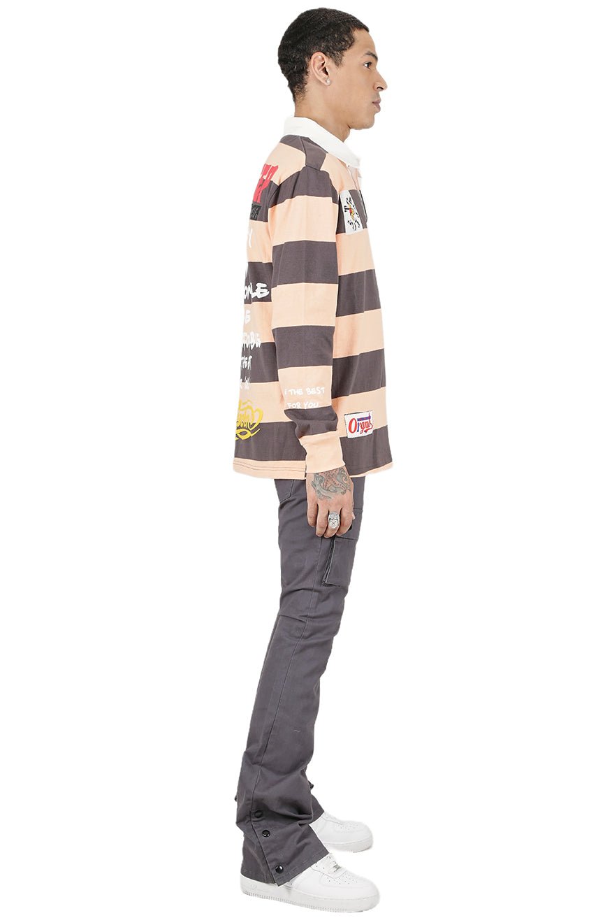 • Men's long sleeve polo shirt with heavy print effects & patch works.
