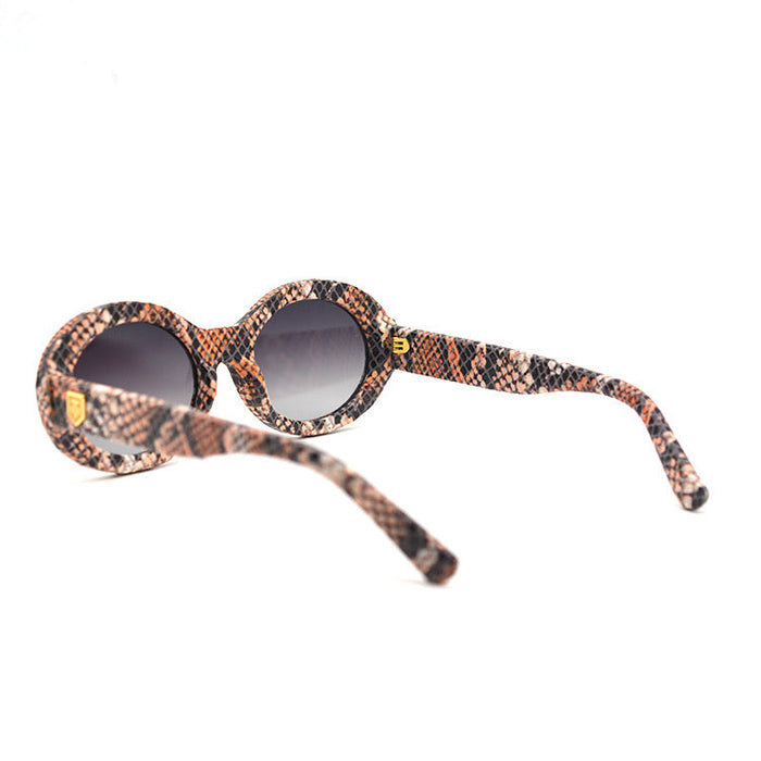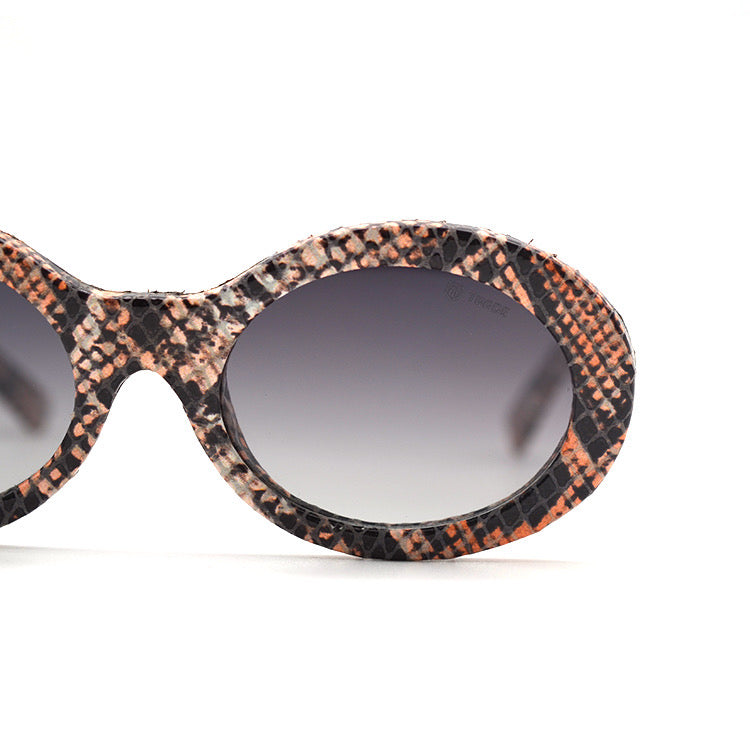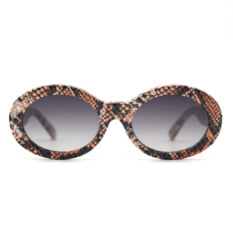 Introducing the Serpente Sunglasses—a fusion of luxury and functionality. These oversized round-eye sunglasses boast a unique snakeskin-textured frame and temples, exuding an exotic charm that elevates any ensemble. Designed in California, they feature high-quality lenses offering 100% UV protection, ensuring your eyes are shielded from harmful rays. Each pair includes a box, bag, cleaning cloth, and case, making them a perfect gift for yourself or a loved one.