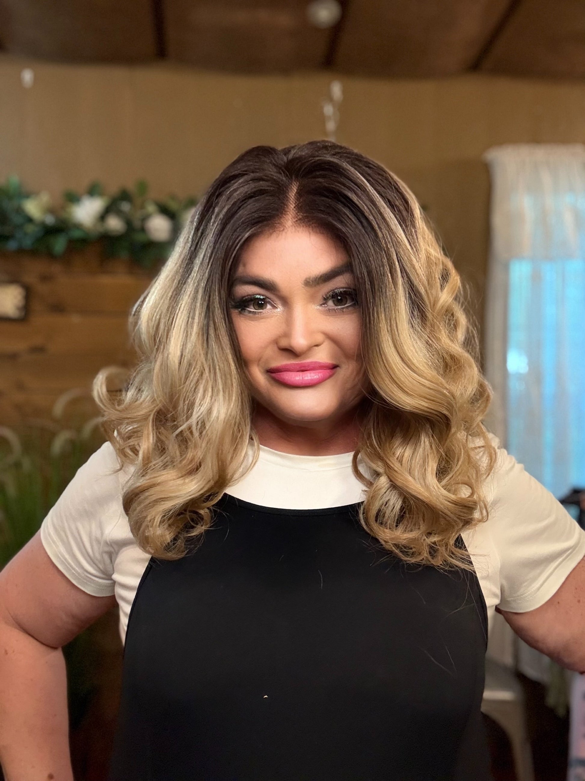 SHAE offers a stunning 13 x 6 darted lace front with a free part for ultimate styling versatility. Made with premium heat-resistant synthetic fiber, this 16 inch loose curl wig features a beautiful brown to blonde balayage. Its adjustable straps and standard cap size ensure a comfortable and secure fit.