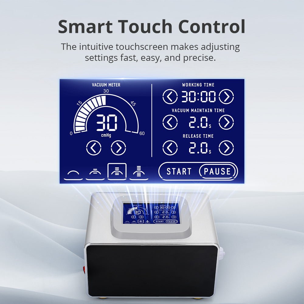 Designed for professional and personal use, this system features adjustable suction settings for customized treatments. The vacuum cups create targeted negative pressure, stimulating blood flow and lymphatic detoxification, helping to improve skin elasticity and contour definition.