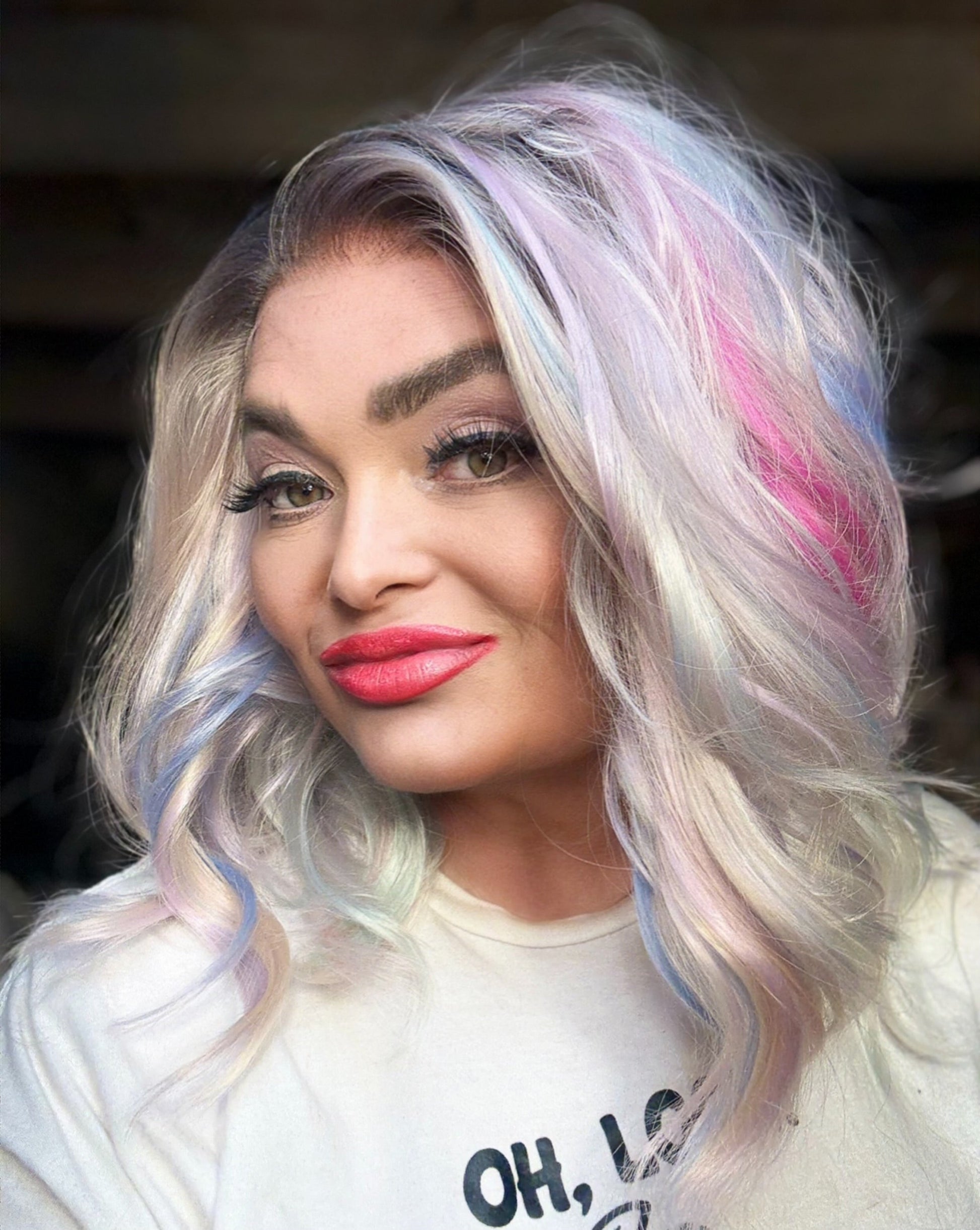 Upgrade your look with SORBET - featuring a stunning, cool tone blonde with rainbow highlights and rooting. Its 13x4 lace front and free part offer versatile styling, while the 14 inch loose curls add volume and bounce. Made with premium, heat resistant synthetic fiber, and adjustable straps for a perfect fit.