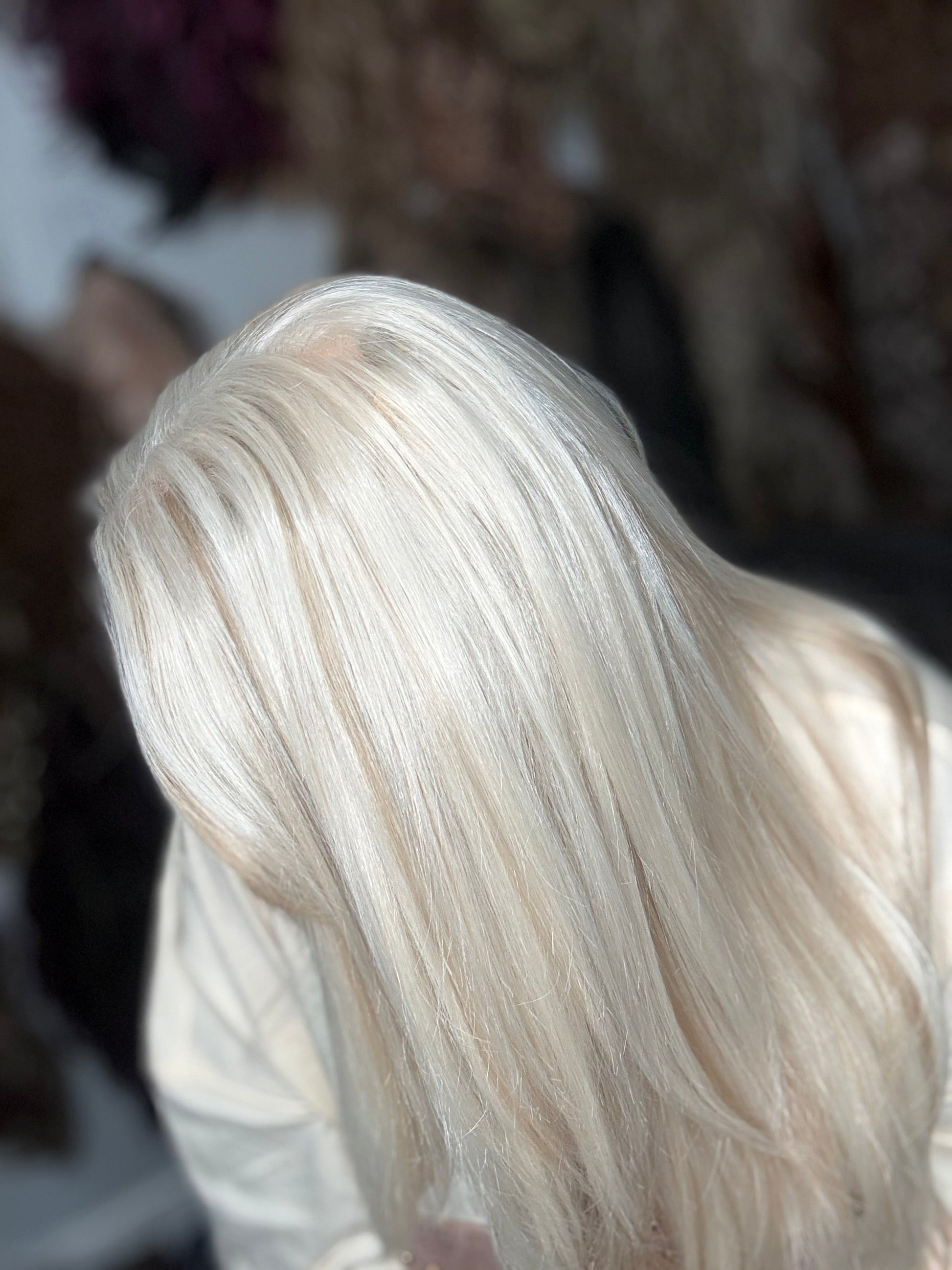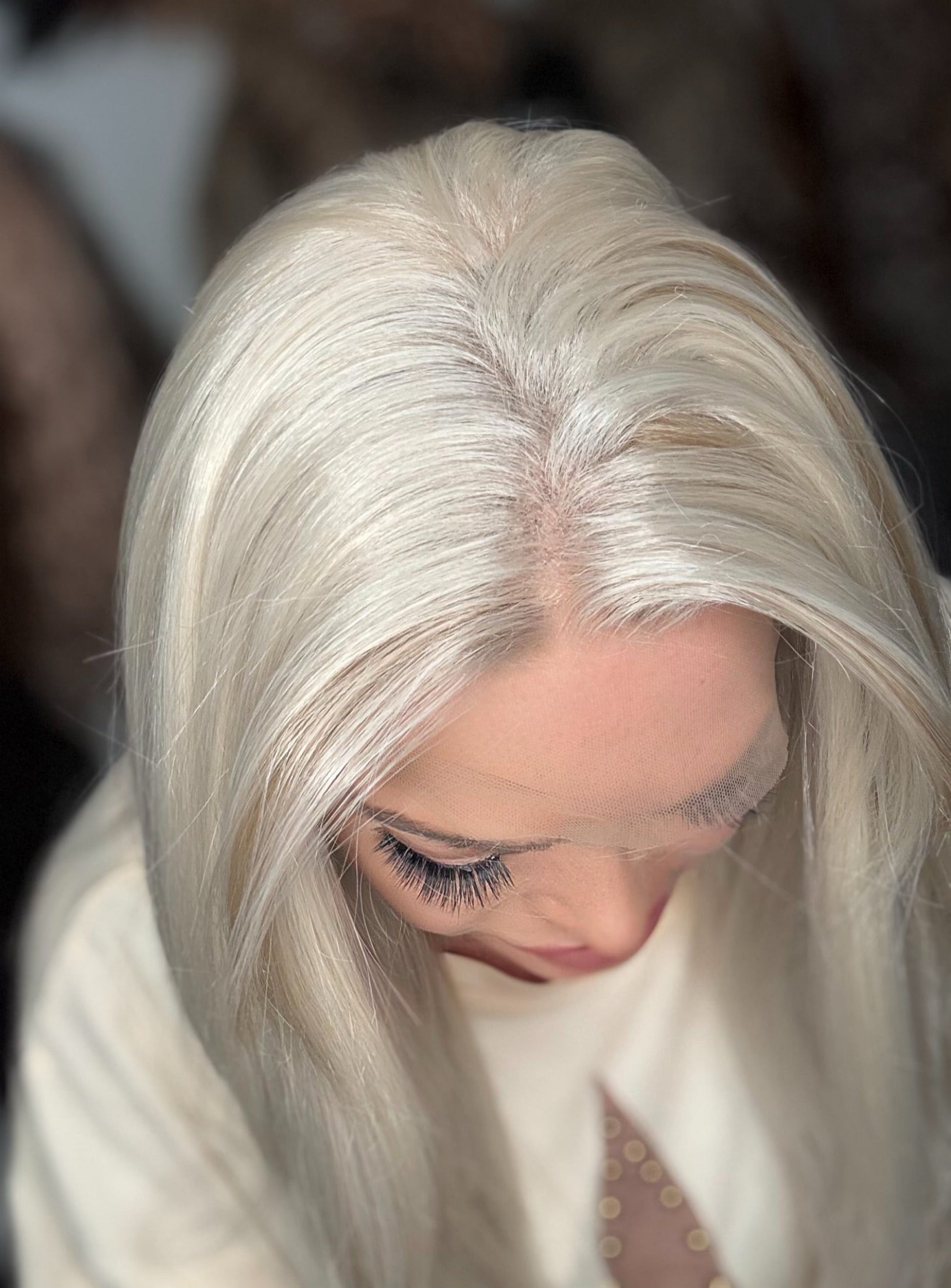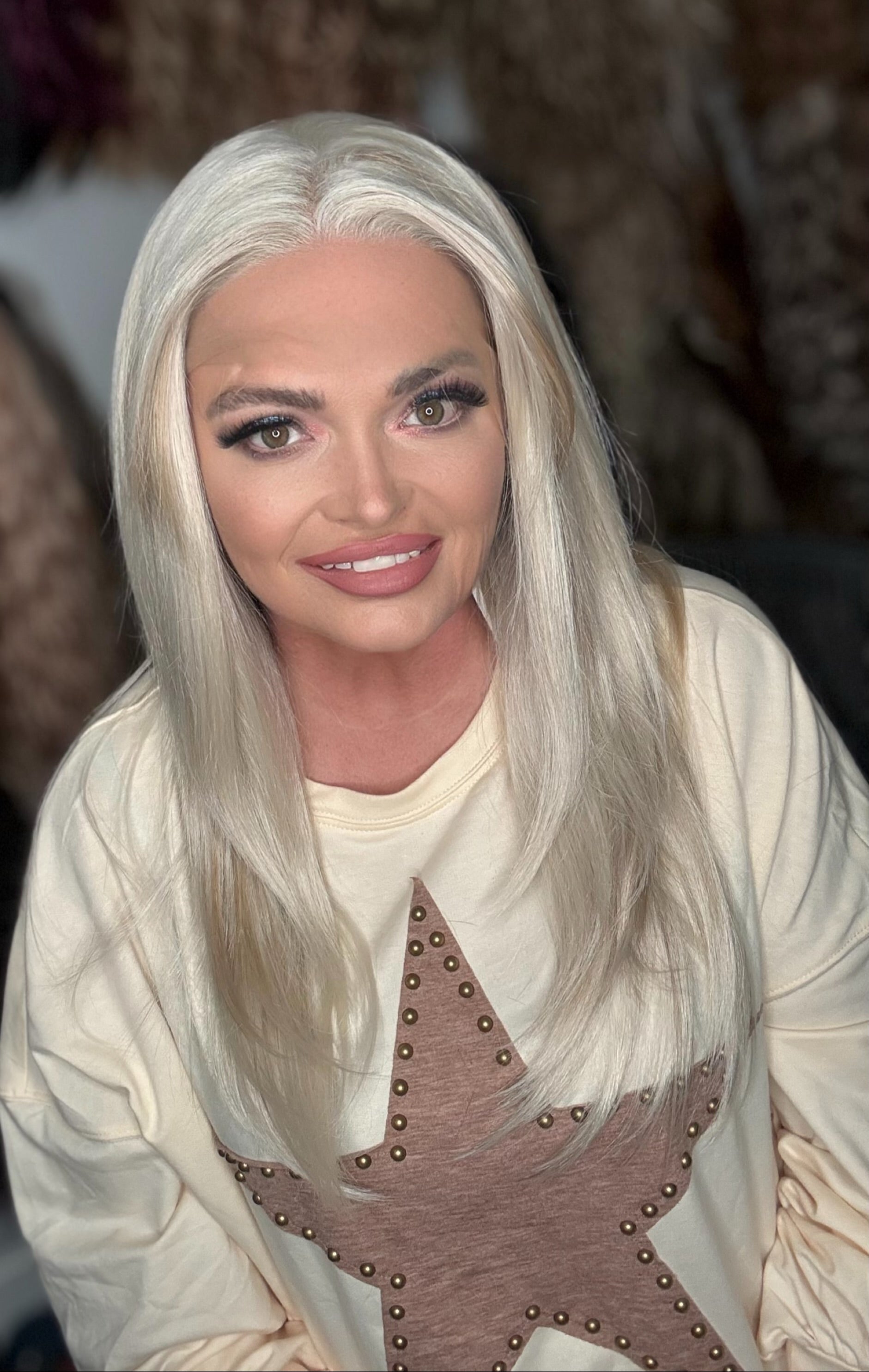 Introducing STACI, a premium 24 inch heat-resistant synthetic fiber lace front wig with stunning platinum and warm blonde low lights. The free part and adjustable straps make for a customizable fit, while the standard cap size ensures comfort. Stock and ships within 7 to 10 days.