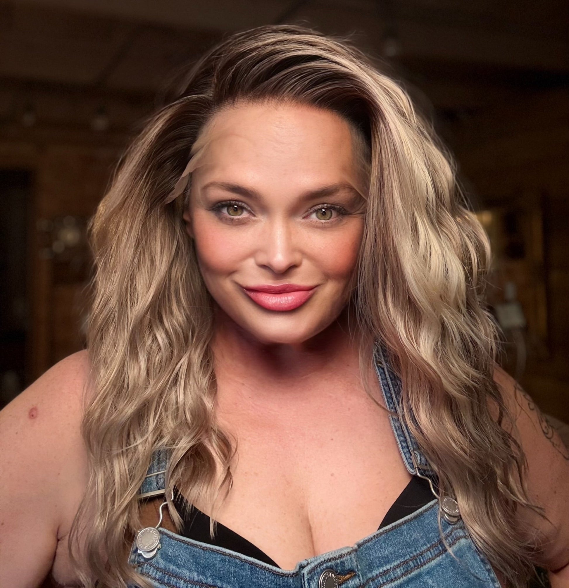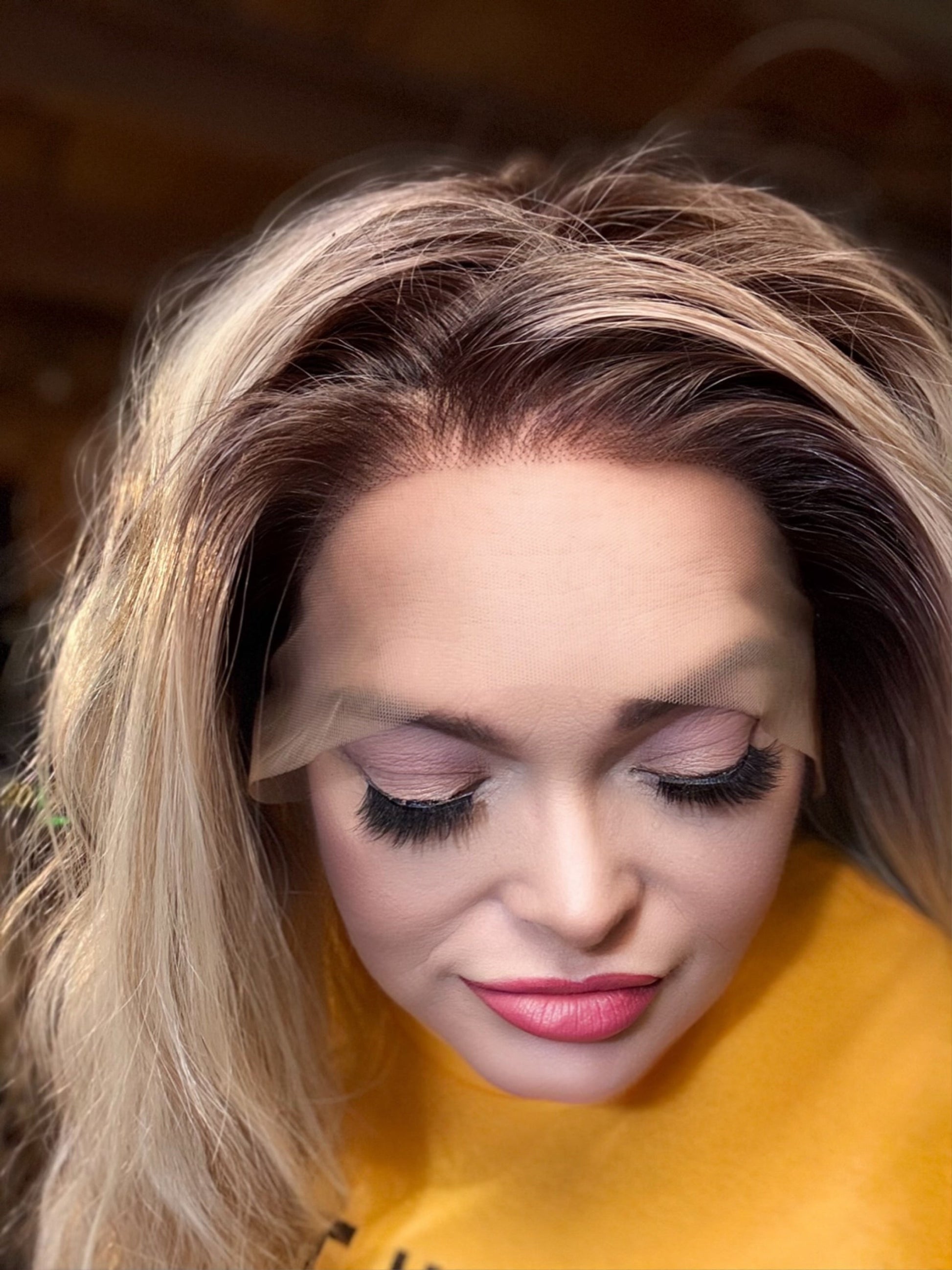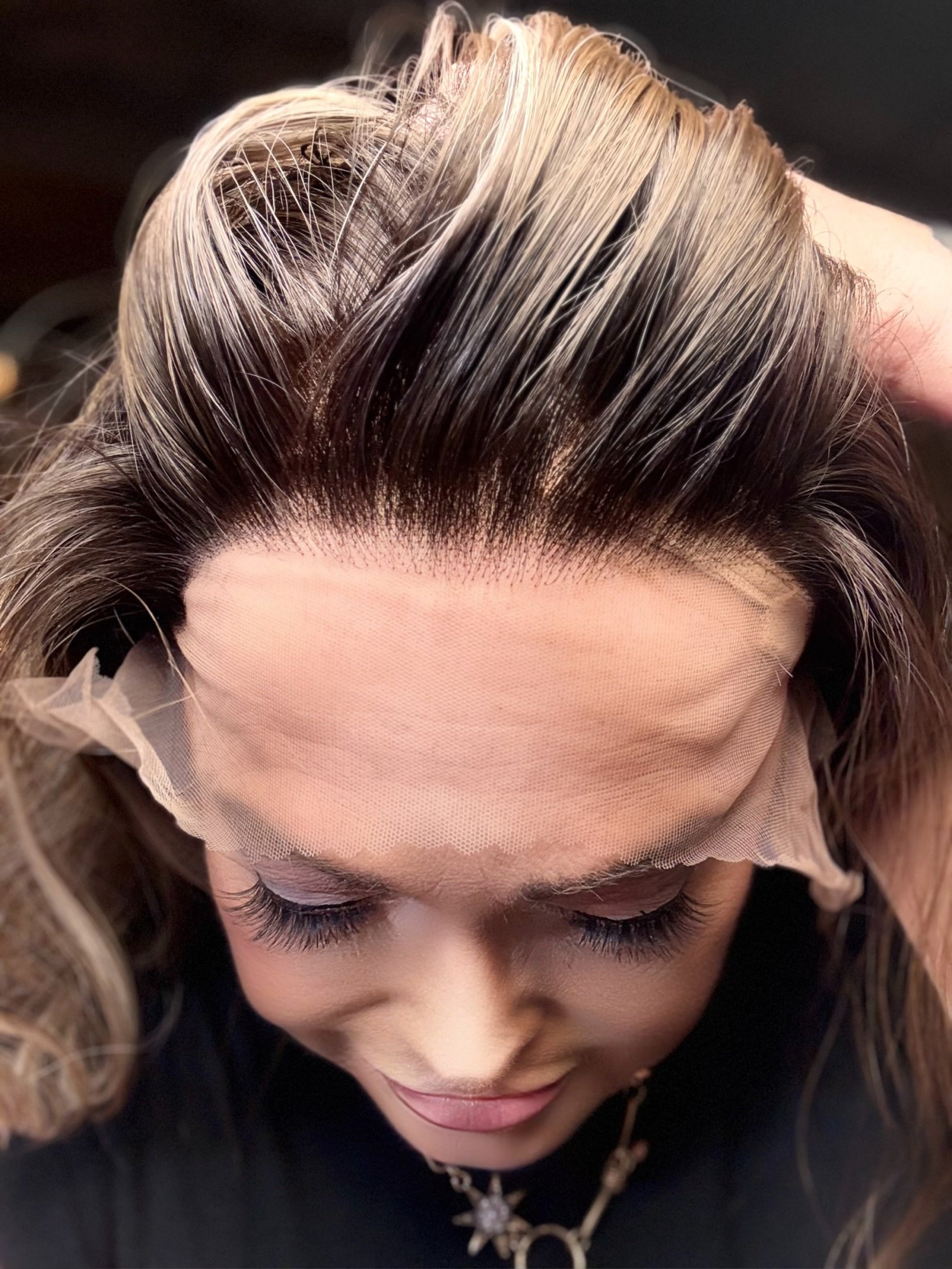 The icy blonde hair features beautifully blended low lights and natural rooting, delivering a multidimensional look that perfectly frames your face. Designed with a 13 x 6 lace front and adjustable straps, the STACIA Iced Mocha offers a seamless, realistic appearance and a customized fit that conforms to your unique head shape.