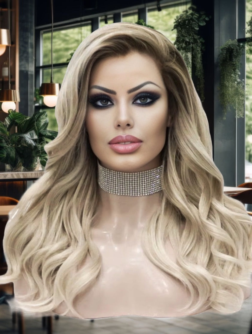 "Upgrade your look with SUMMER HONEY, featuring a 20-inch loose curl and natural blonde color with rooting. The lace front allows for a seamless and natural hairline, while adjustable straps ensure a comfortable fit. Made with premium heat-resistant synthetic fiber, this wig is perfect for any occasion."