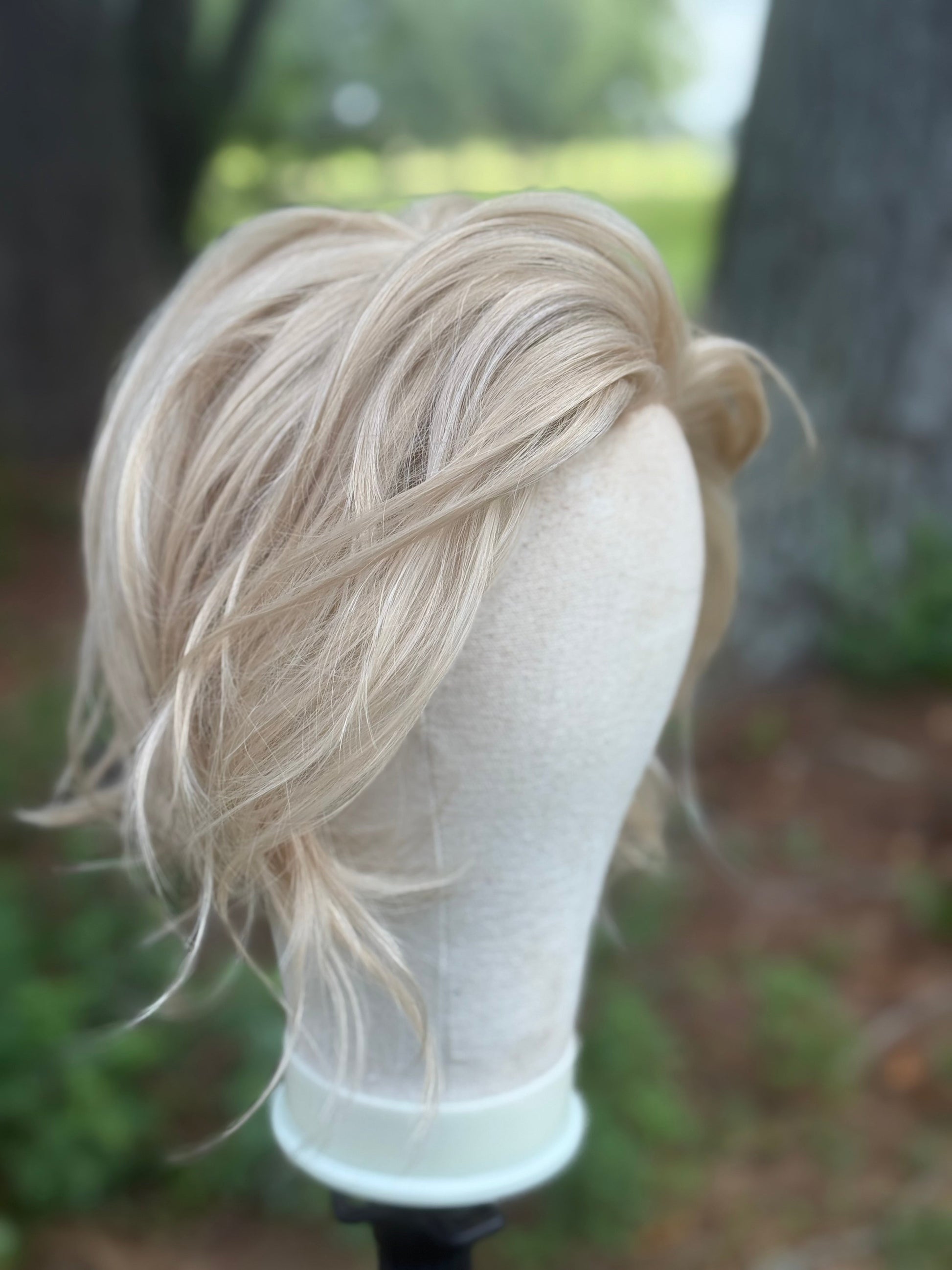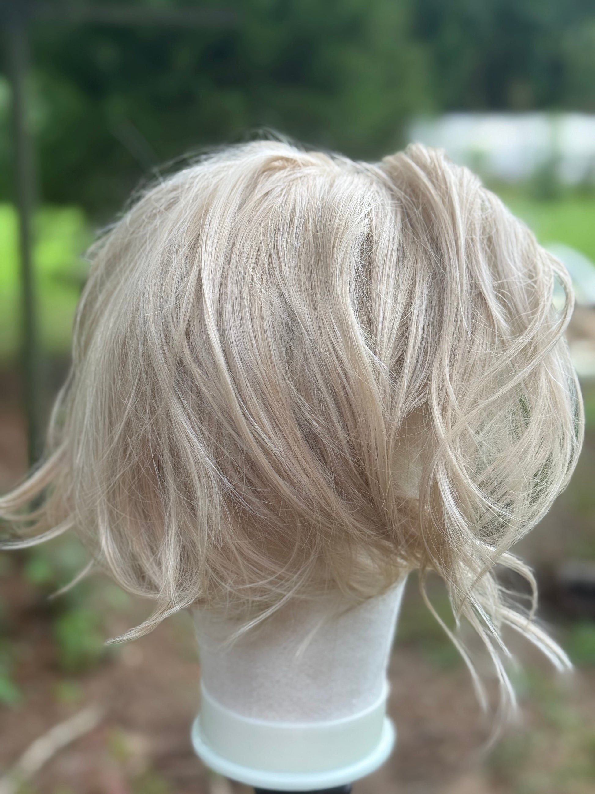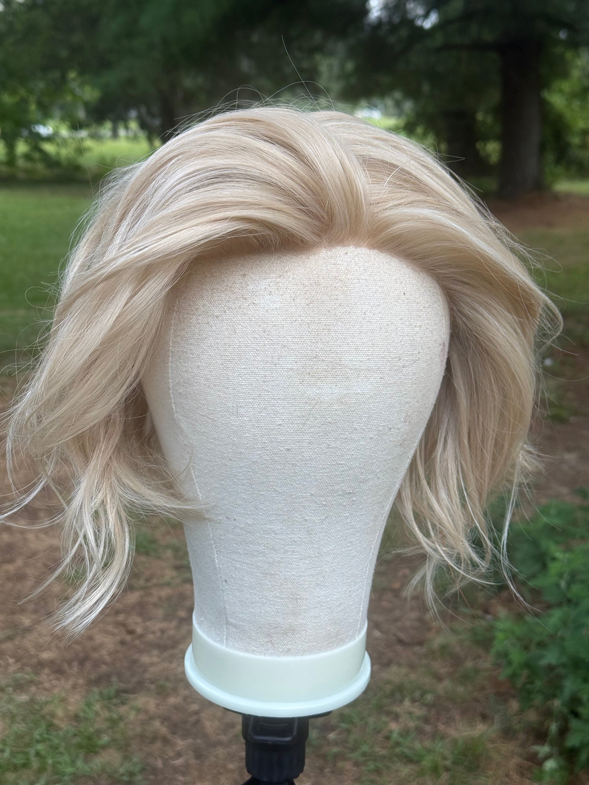TABBY is a versatile and stylish lace front T part wig, customized by WBR for a perfect fit. Made with premium heat resistant synthetic fiber, it features a 10 inch loose body wave, layered for added volume. The medium neutral blonde color gives a natural look, with no visible roots. Adjustable straps and a standard cap size make it comfortable to wear all day.