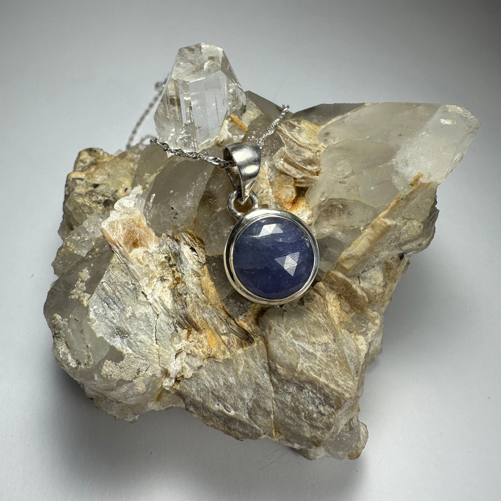 Round cut Tanzanite pendant in .925 Sterling Silver clasp