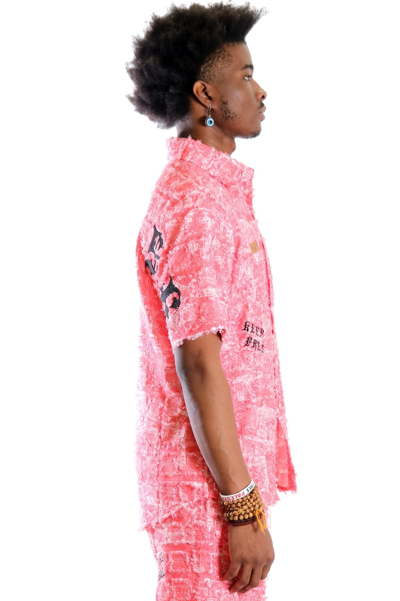 • New L.T.K. Men's premium ripped & repaired short sleeve button down shirt with heavy embroidery effects.