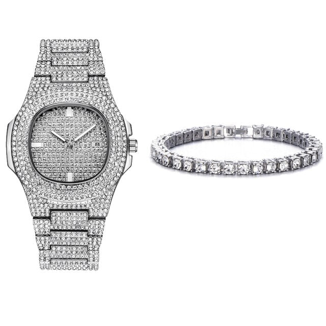 This elegant silver tennis bracelet and watch set is perfect for any occasion. Boasting a Fashion Luxury Brand Style, this set features a Swiss Geneva timepiece with precise quartz movement for accurate timekeeping and 30M waterproofing for everyday use. Perfect for Christmas gifts, anniversaries, parties, birthdays, and dates.