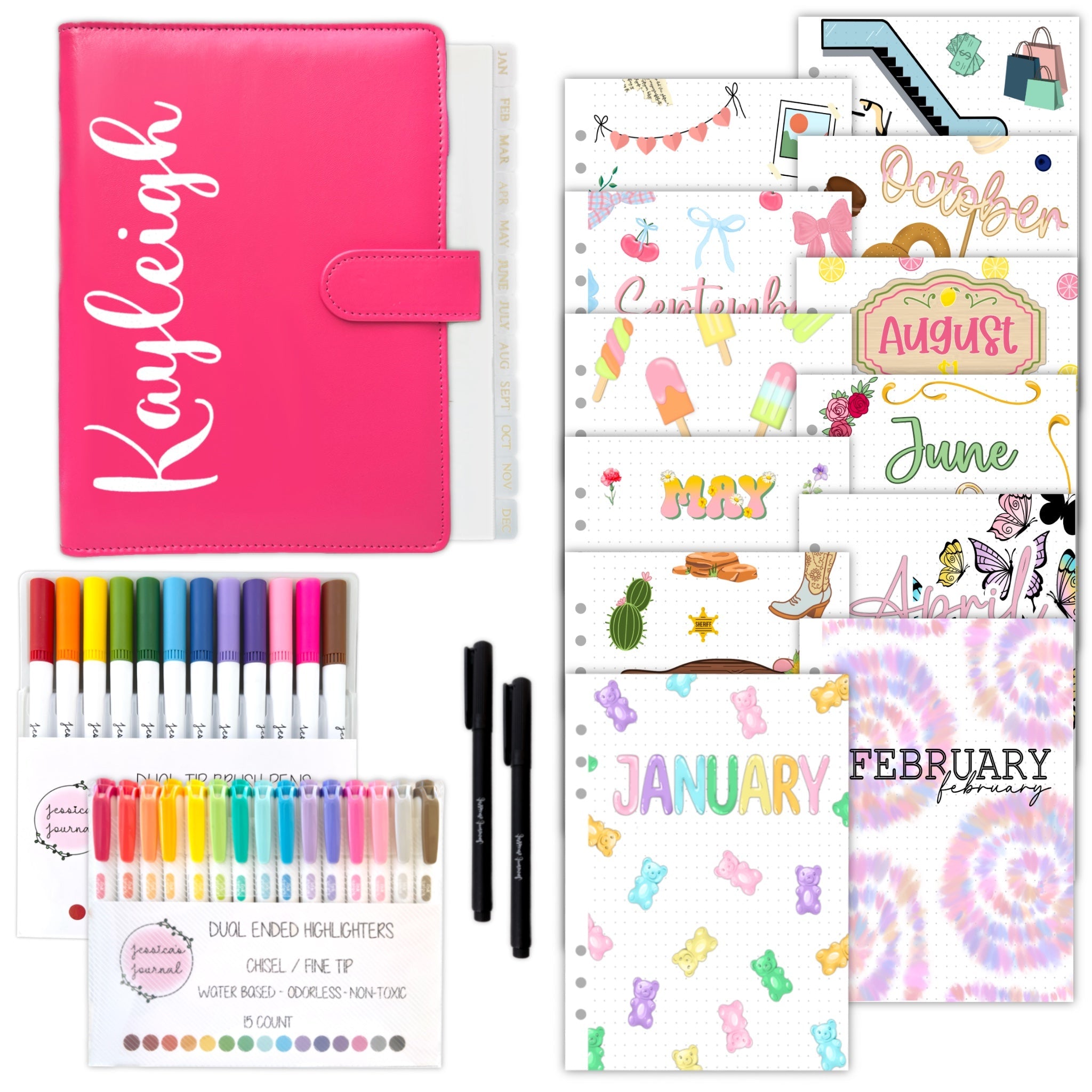 • ten single pages (2025 Calendar, About Me, Movie Log, A Year in Color, Anxiety, Rate My Day, A Year of Health, Energy, Weather, Temperature)