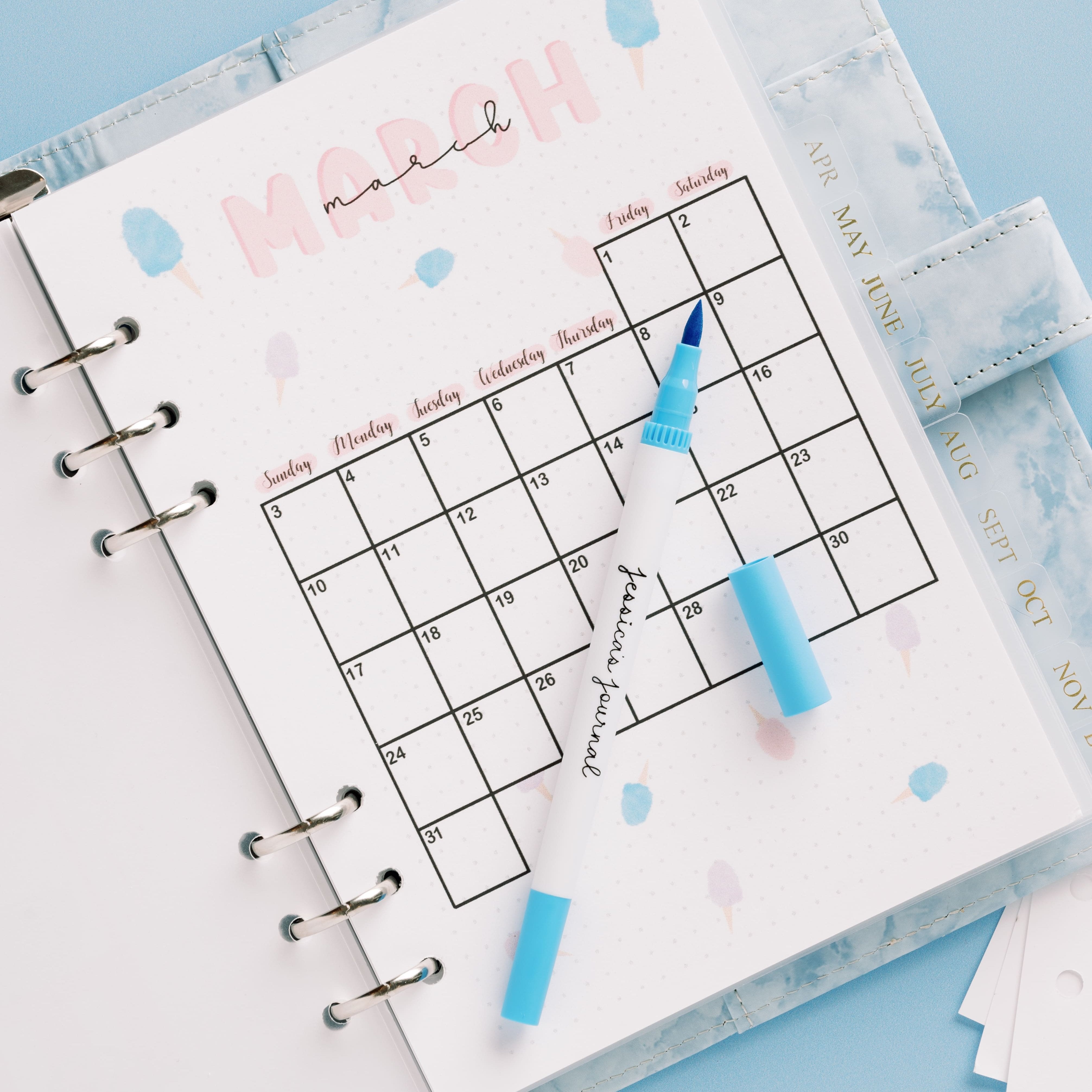 • and 12 months of monthly themed pages (72 pages): choose your starting month