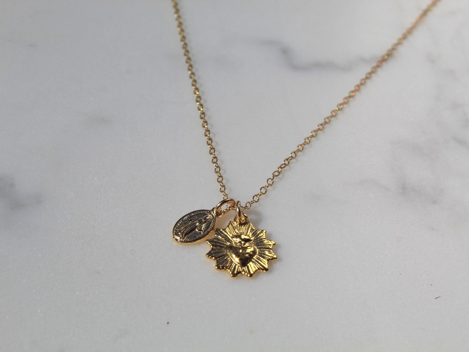The Sacred Heart of Jesus is a powerful symbol of God's limitless love for mankind. It serves as a wearable devotion to His mercy and transformative divine love. This piece is a beloved customer favorite, featuring the Blessed Mother and Jesus, and serves as a heartfelt reminder: "Most Sacred Heart of Jesus, Have Mercy on Us."
