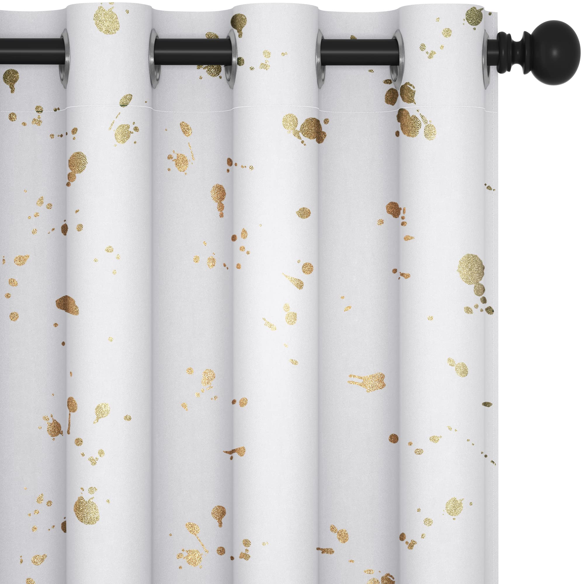 The Deconovo blackout curtains are made of 100% high-quality polyester fabric that is robust, long-lasting, and machine washable. The curtains feature beautiful gold foil printed dots that create a unique and modern look, adding a touch of elegance and sophistication to any room.