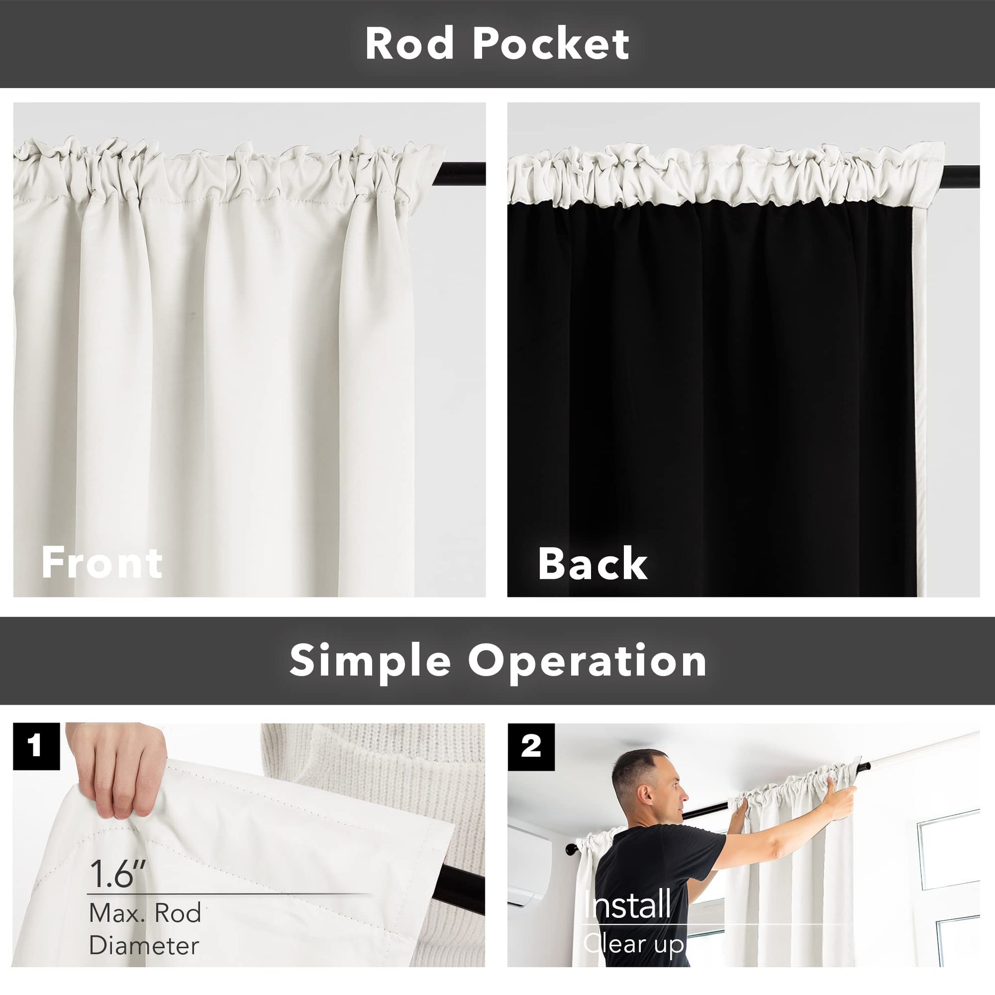 Modern rod pocket style integrates with any d¨¦cor, providing a polished look and optimal darkness with no light seepage.