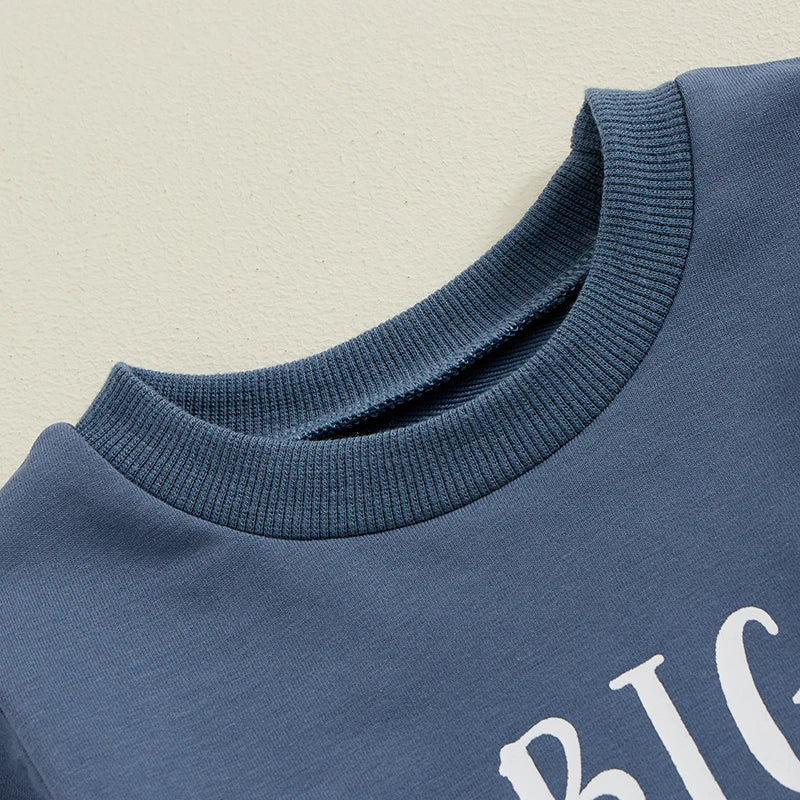 Toddler Kids Boys Girls 2Pcs Big Brother / Sister Letter Print Long Sleeve Top with Elastic Waist Checkered Print Pants Set Outfit