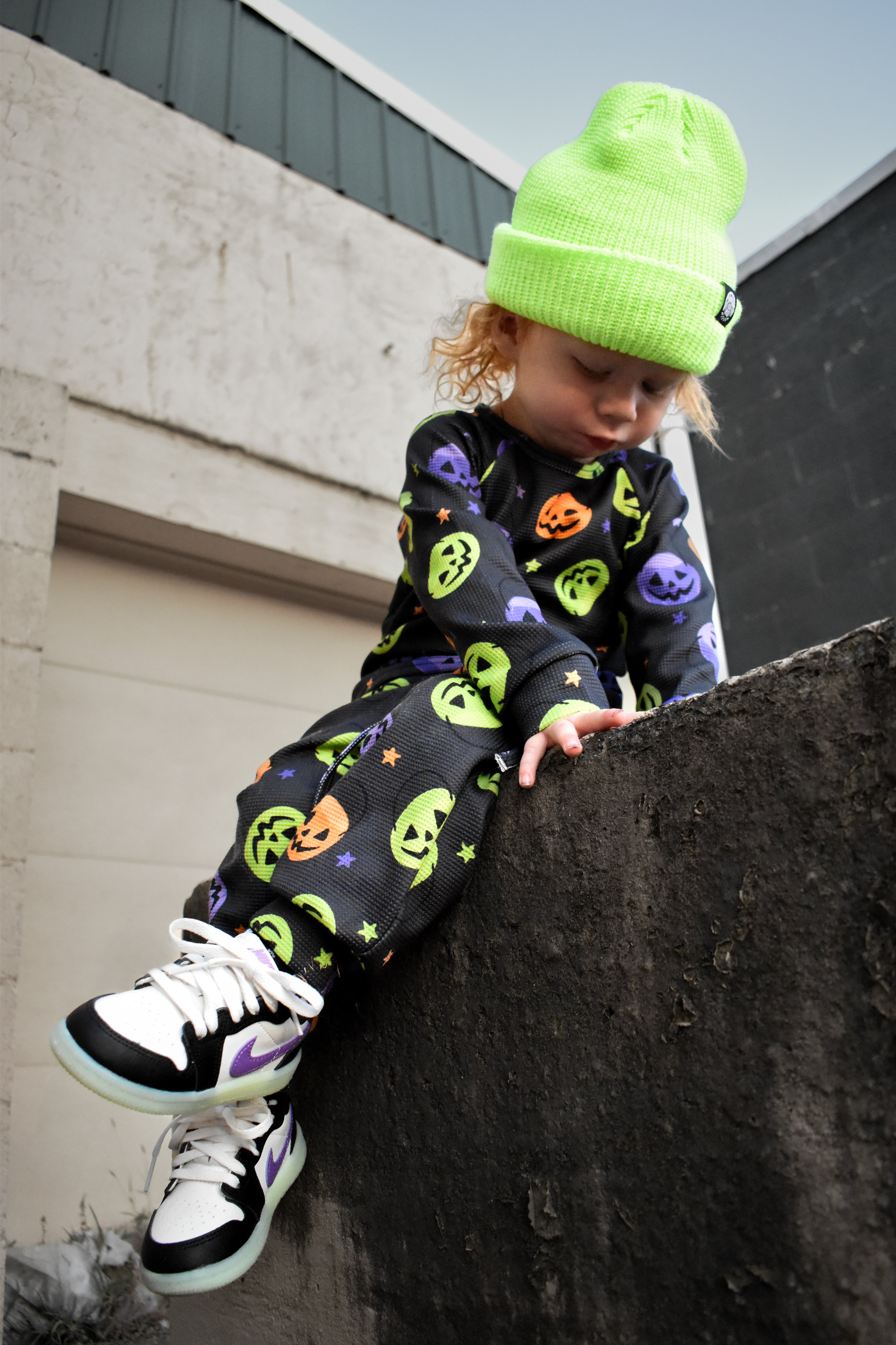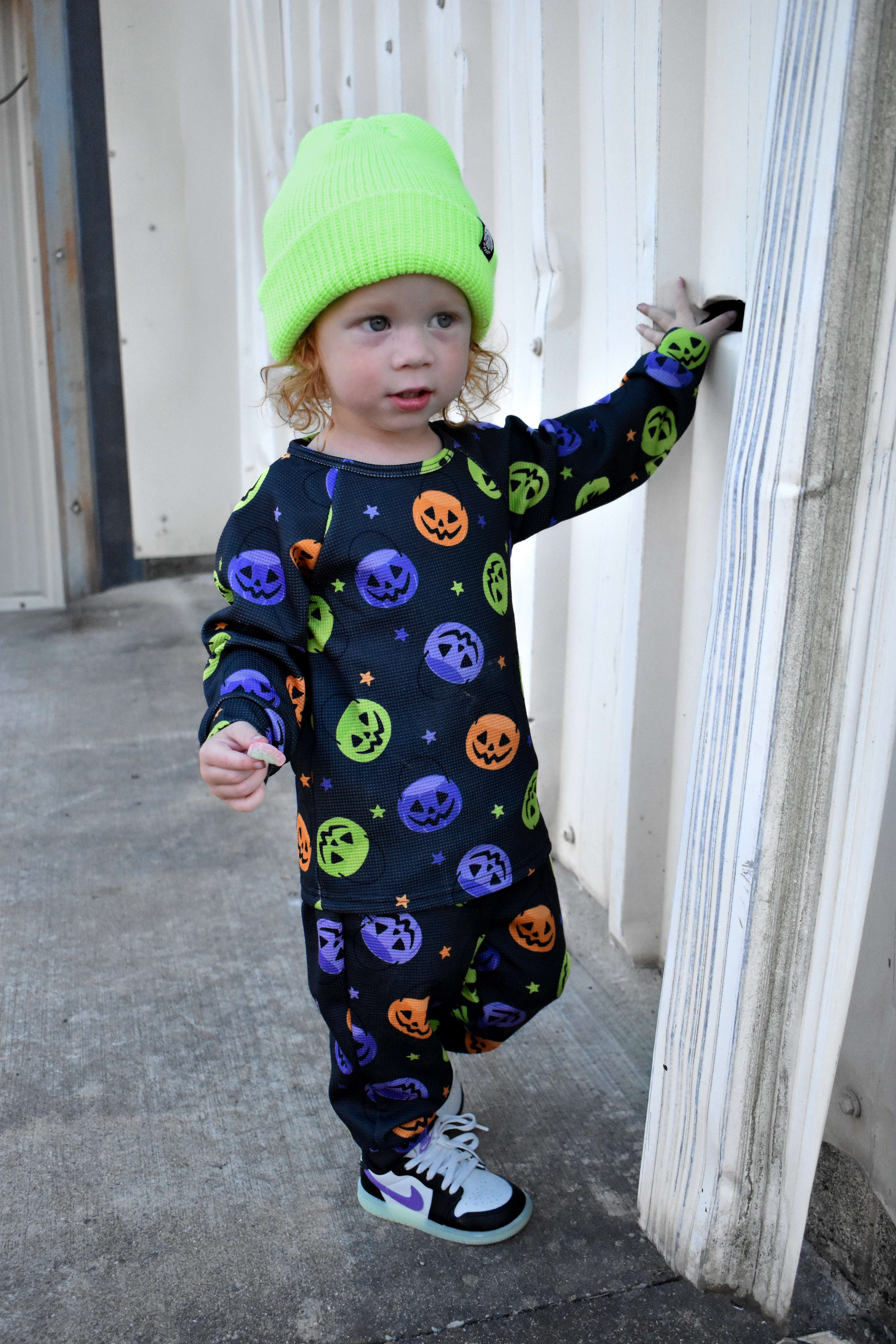 Cozy meets spooky in our Trick or Treat Waffle Set! Made from soft, breathable waffle knit fabric, this matching top and bottom set is perfect for playtime, pumpkin picking, or snuggling up on chilly fall nights. Featuring a relaxed fit and Halloween-inspired vibes, it’s an easy go-to for the season. Durable, comfy, and made for little ones who want to move, this set keeps the spooky spirit alive all October long.