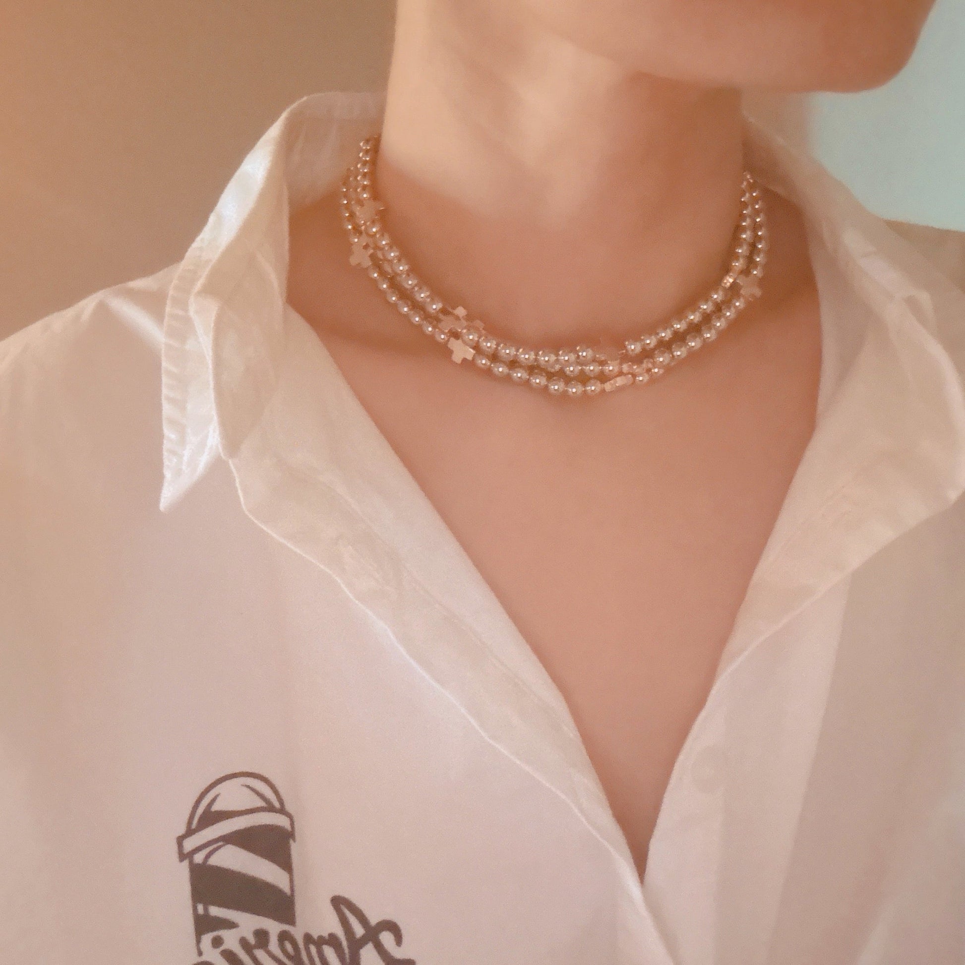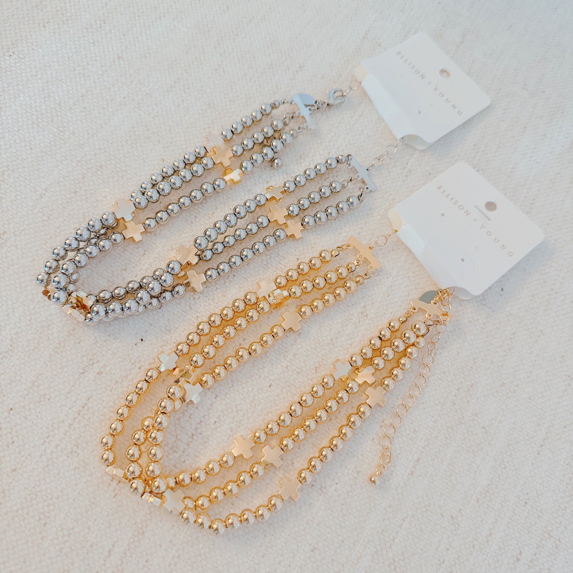 This modern and chic cross necklace features a unique triple layer design that adds a trendy touch to any outfit. With its versatile style, this necklace is a perfect accessory for any occasion, making it a must-have for any jewelry collection.