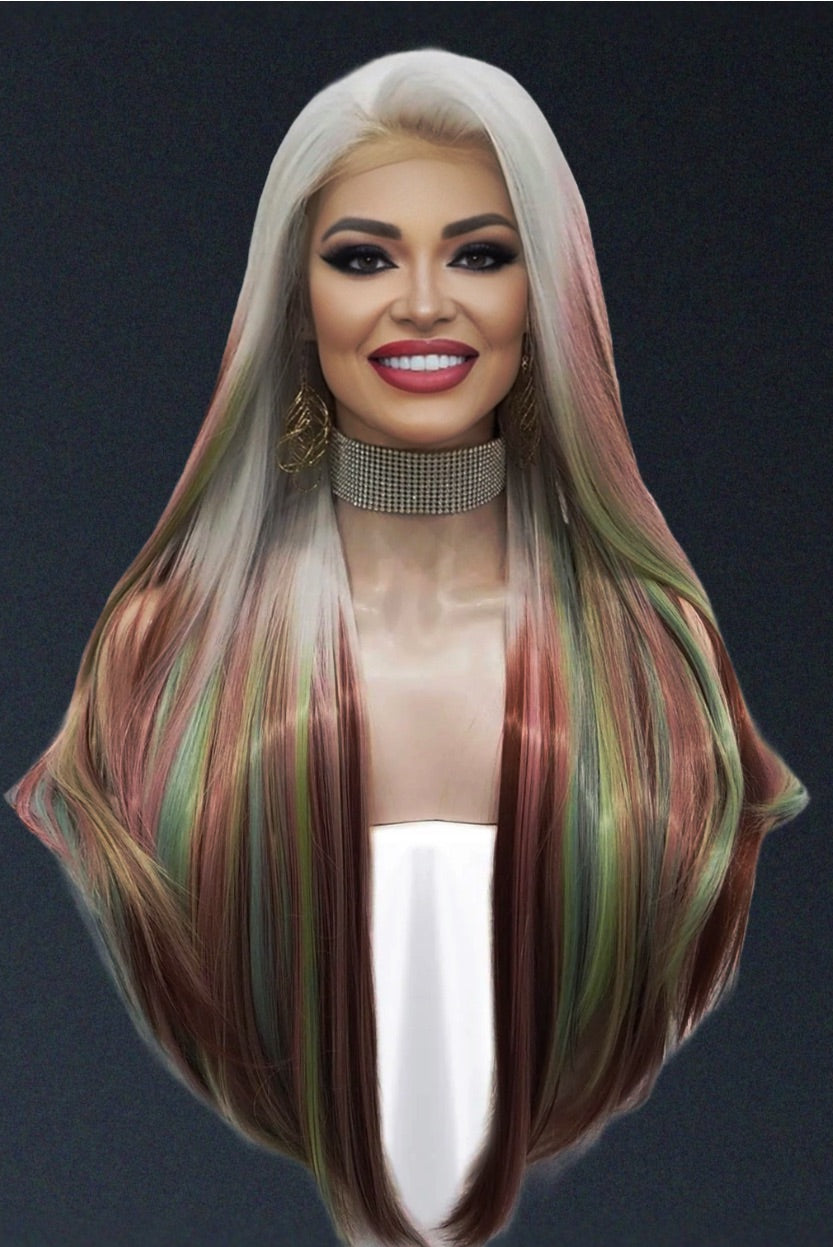 Expertly designed and crafted, the TROPICAL MIRAGE wig boasts a 24-inch straight style with long layers of stunning blonde hues, highlighted with various colors for a truly eye-catching look. The lace front and premium heat resistant synthetic fiber offer a natural appearance and easy styling. With adjustable straps and a standard cap size, this wig is perfect for effortlessly transforming your look. Supplier direct shipped for convenience.