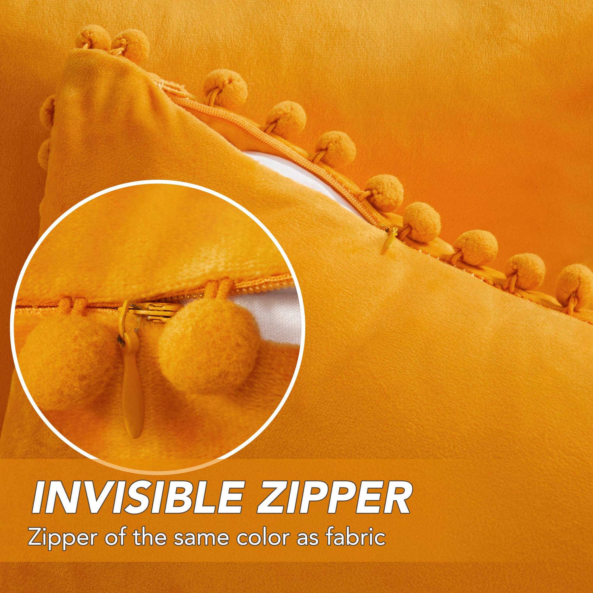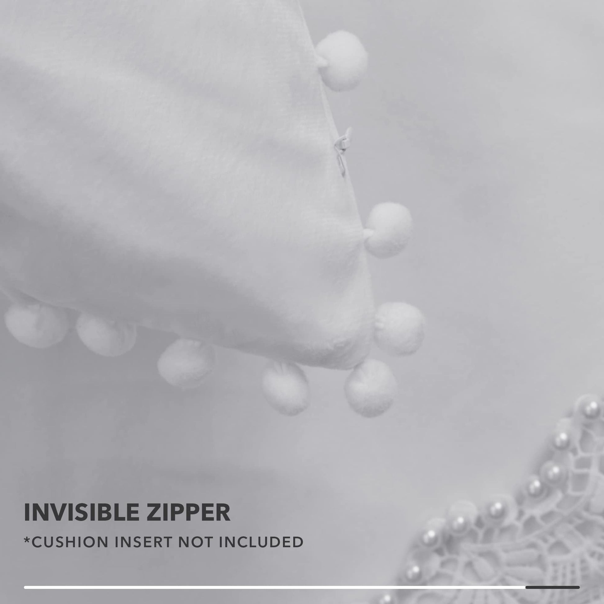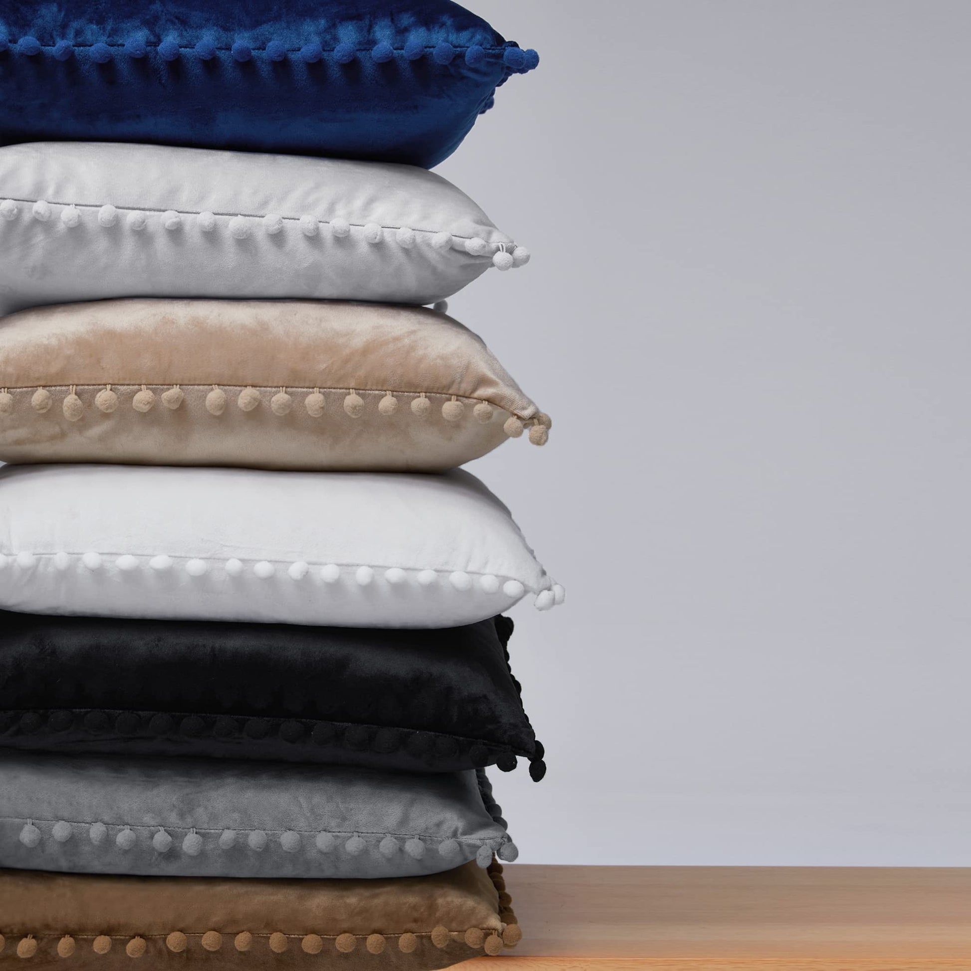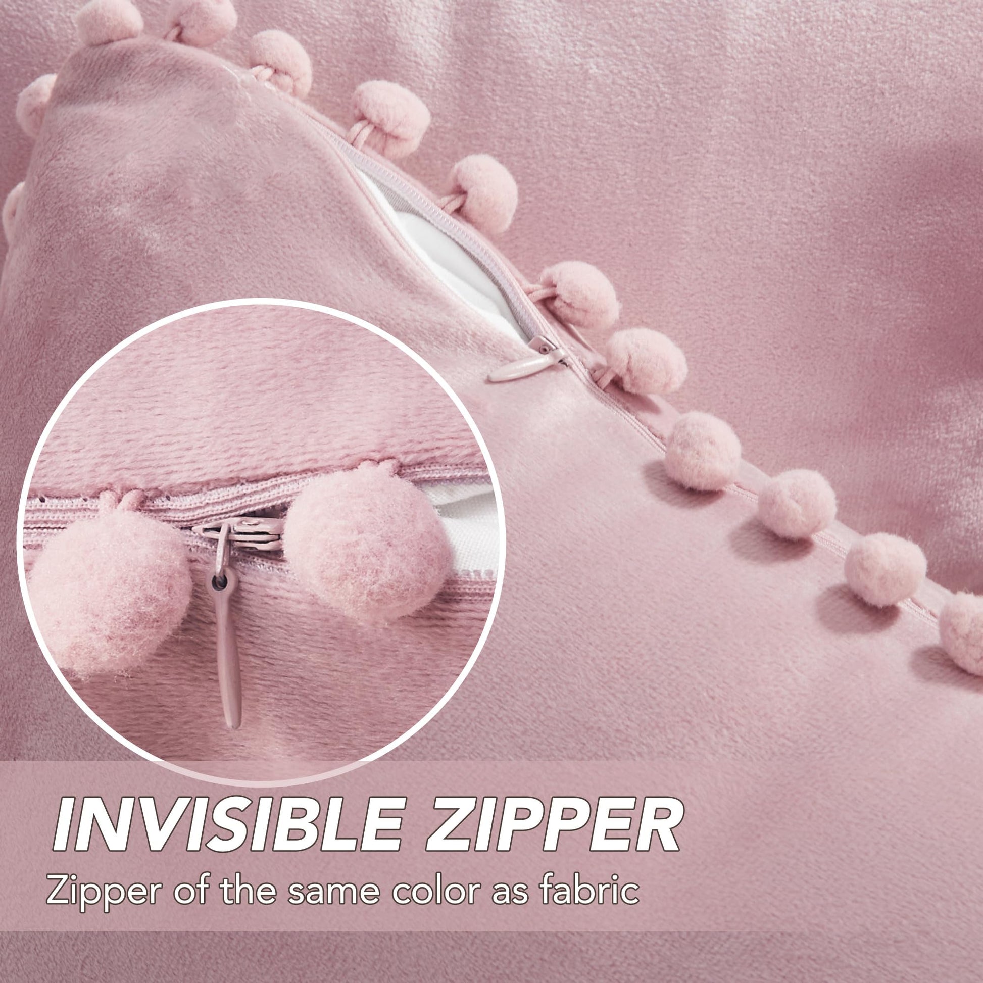 Velvet Throw Pillow Covers with Pom-Poms, 26x26 Inch