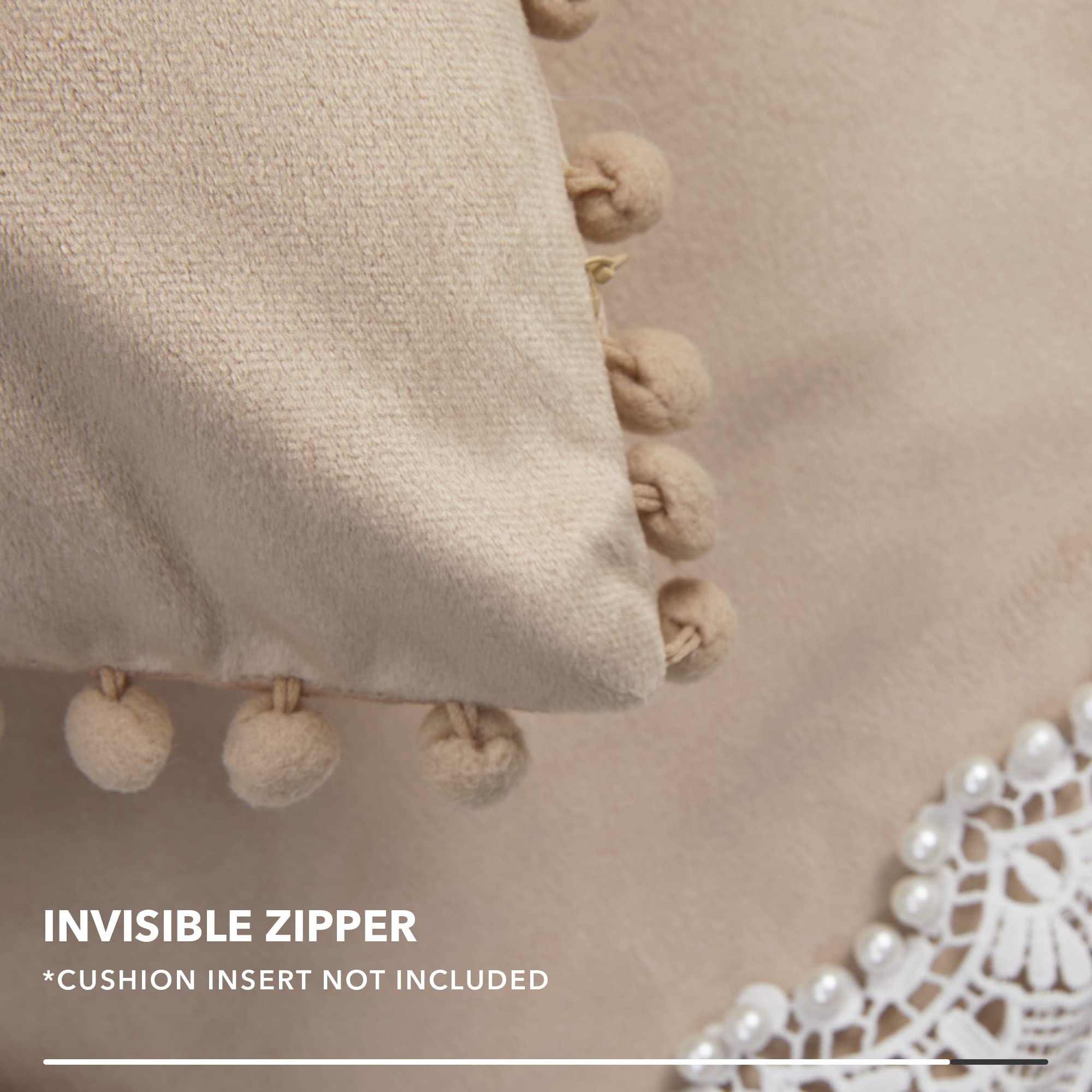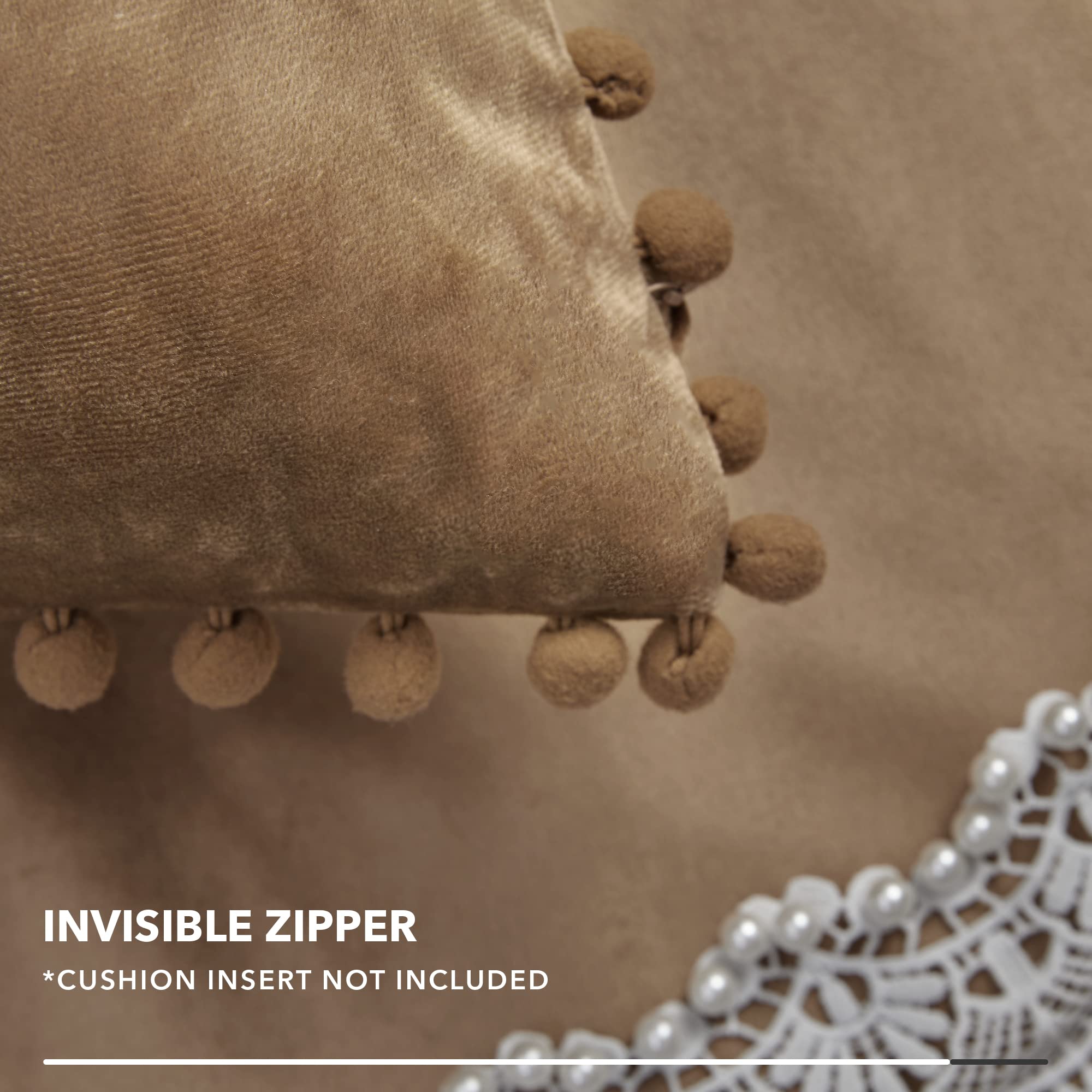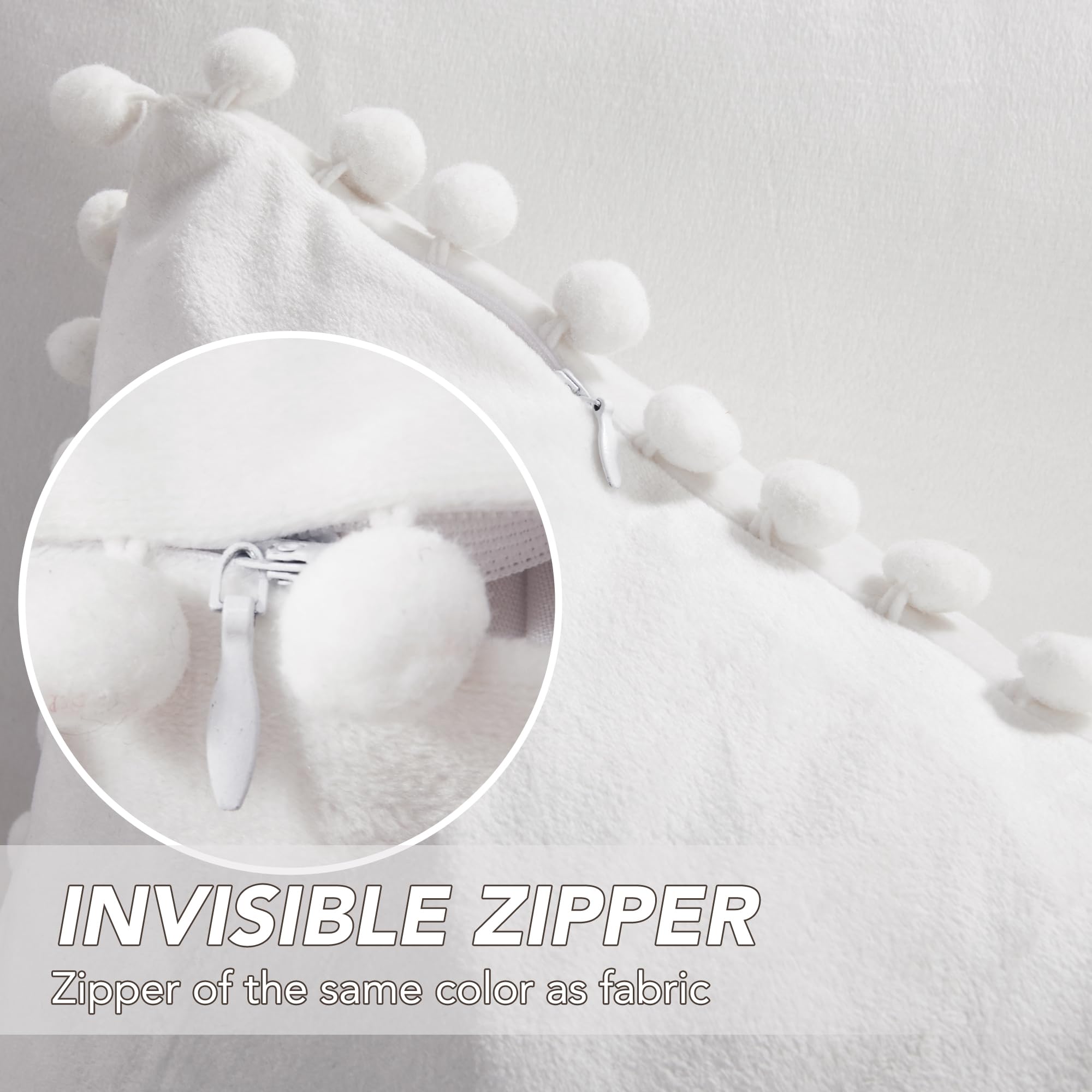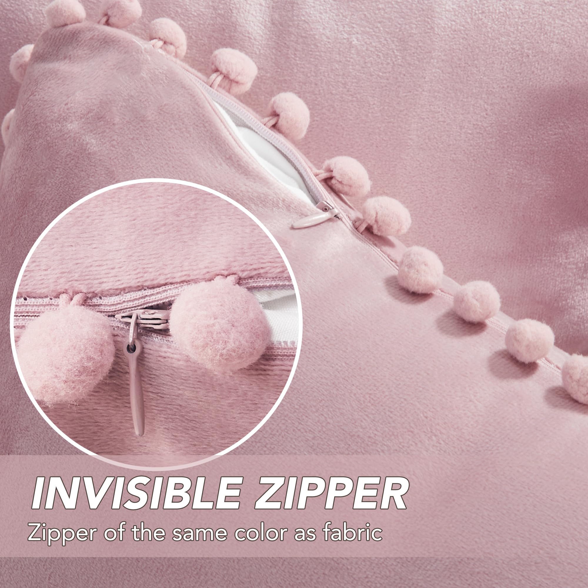 • Velvet Throw Pillow Covers with Pom-Poms, 26x26 Inch