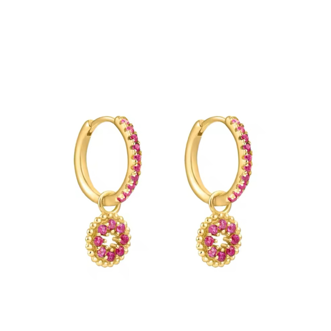 Experience the vibrant energy of these pink earrings, complete with a removable circular charm to match.