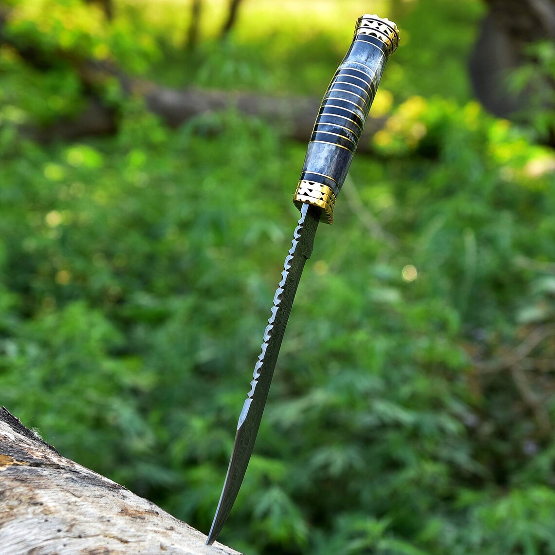 13-inch Damascus Steel Blade: Known for its durability, razor-sharp edge, and beautiful wave pattern.