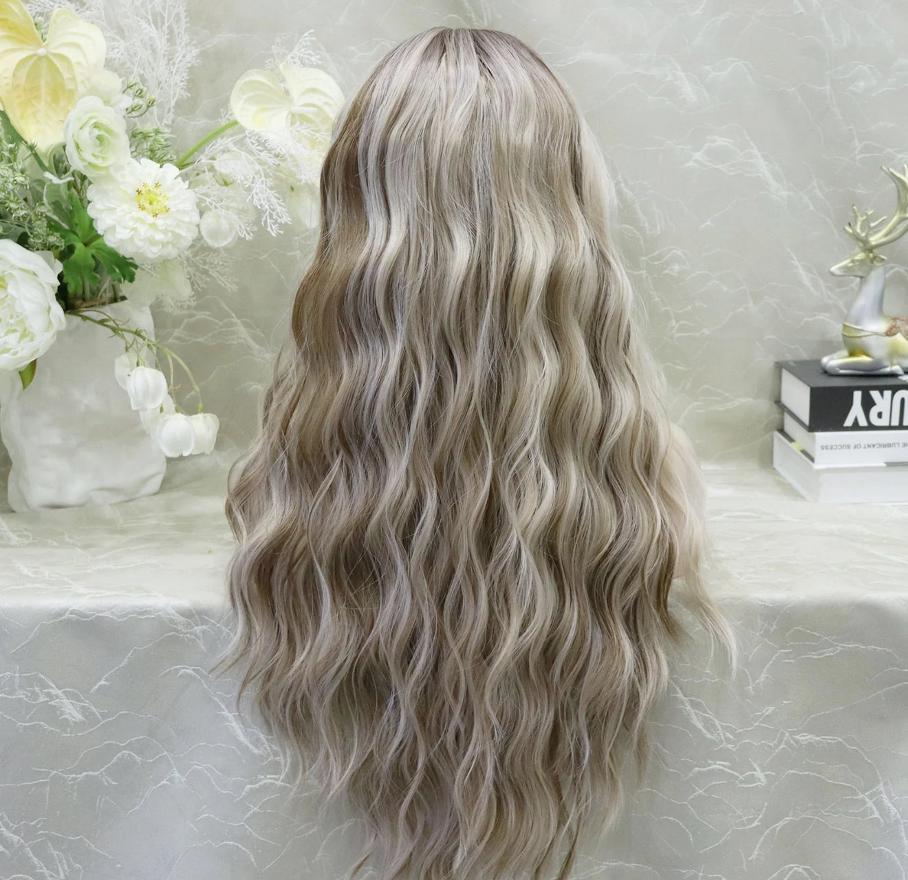 As an industry expert, I present WAVES - a stunning, 26-inch beach wave curl with a lace front, free part, and premium heat resistant synthetic fiber. Featuring a stunning blonde color with low light and rooting, WAVES also offers adjustable straps and a standard cap size for a comfortable fit. Supplier direct shipped for convenience.