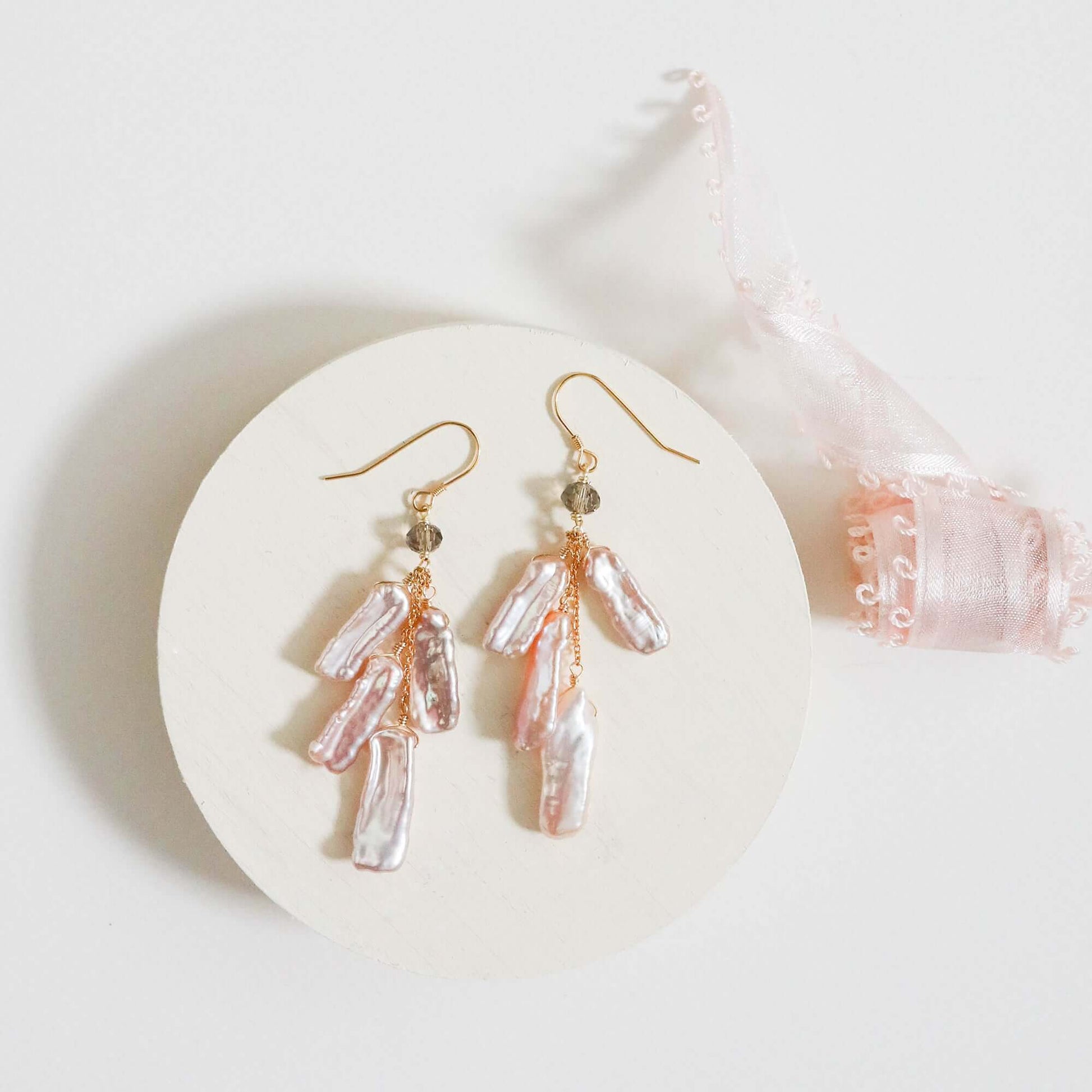 Our stick pearl earrings are completely effortless and unique. Made with 4 freshwater stick pearls are hung in a cascade with a black spinel accent stone.