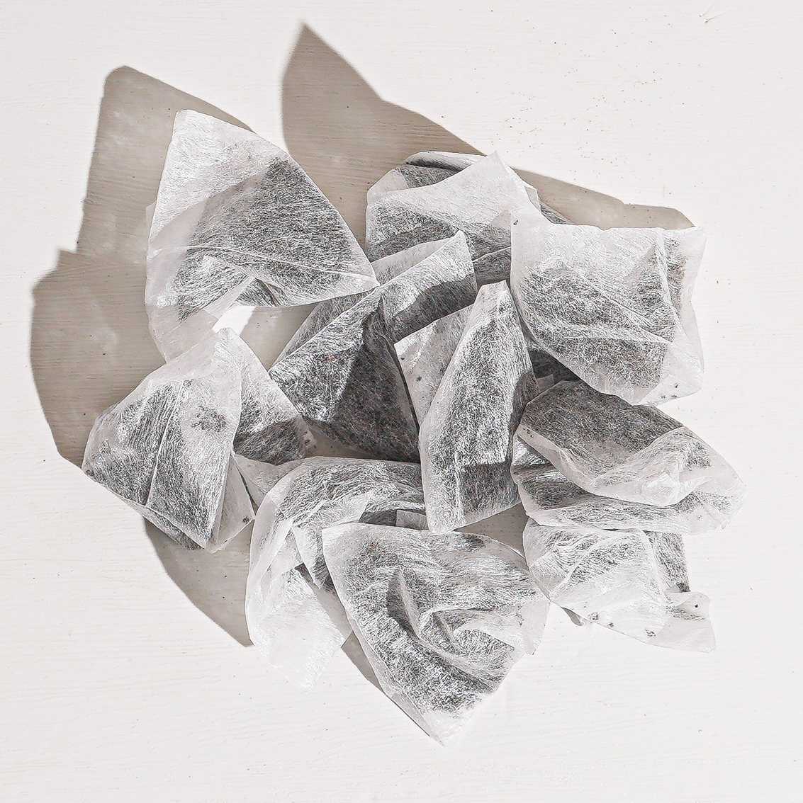 The tea bags are unbleached, free of wasteful envelopes, staples, strings or tags of any kind