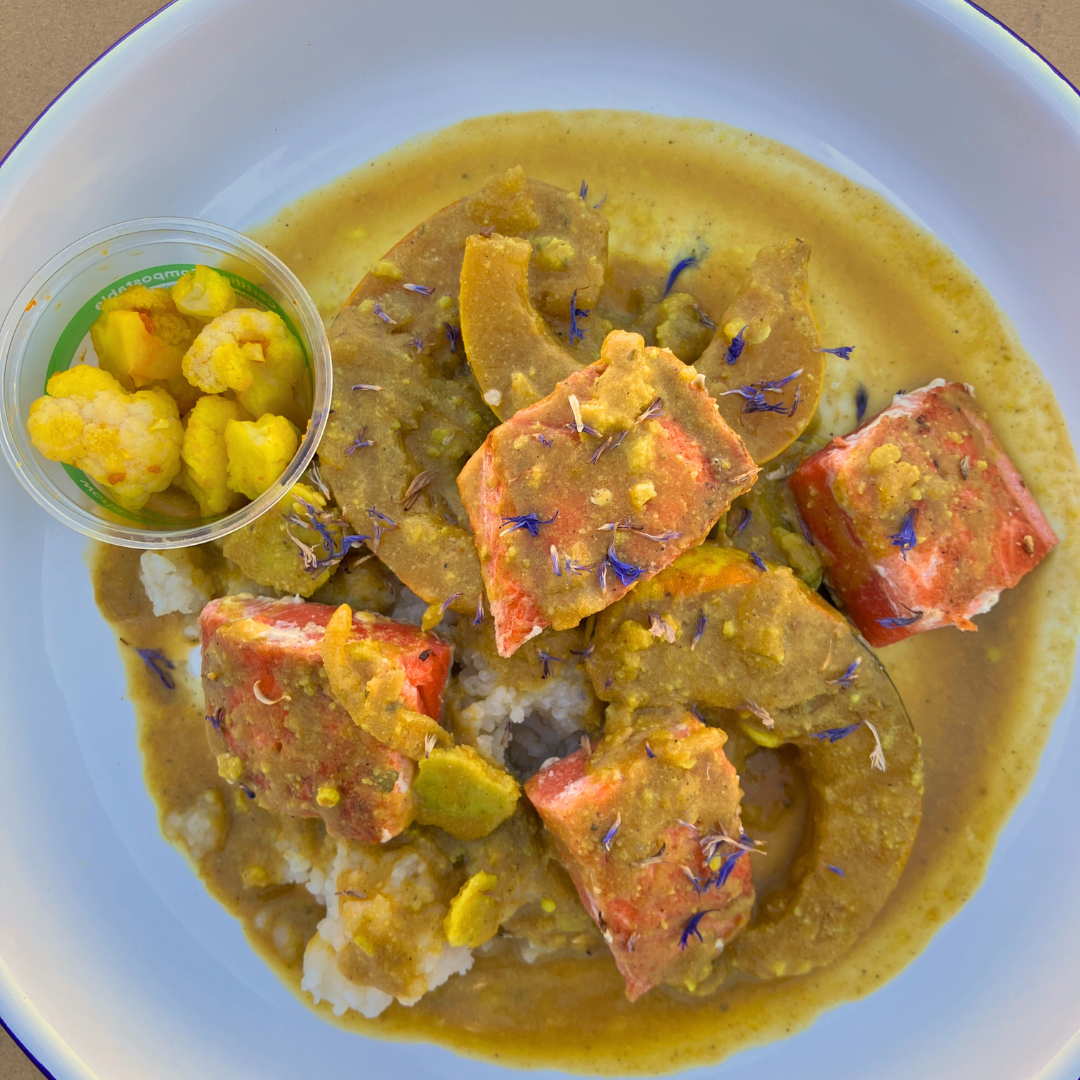 AIP Curry? Yep! An AIP curry that actually tastes like the curry dishes so many of us miss on an AIP elimination diet. Our seed-free and nightshade-free proprietary blend of spices, masterfully recreates the unique flavors of this traditional Indian dish. We sourced wild-caught sockeye salmon for its high nutrient density, and paired it with carnival and butternut squash for the perfect fall/winter dish. In addition to bringing back curry into our lives, this dish is served with couscous…AIP couscous that is, made from fermented cassava root. Let’s just say this is an absolute game changer for our AIP meal options. And lastly, to help nurture our gut microbiome, this dish is served with in-house, lacto-fermented cauliflower with a touch of anti-inflammatory turmeric. This dish is sure to bring a smile to your face. Bon appétit!